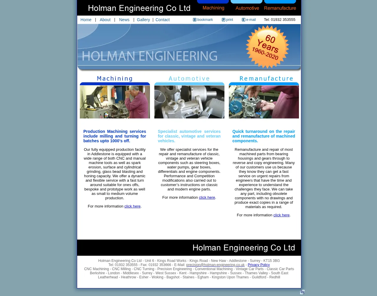 Unit 6, Kings Road Works, Kings Rd, Addlestone KT15 3BG, UK, Egham, England, United Kingdom of Great Britain and Northern Ireland01932 353555precision@holman-engineering.co.ukhttp://www.holman-engineering.co.uk/