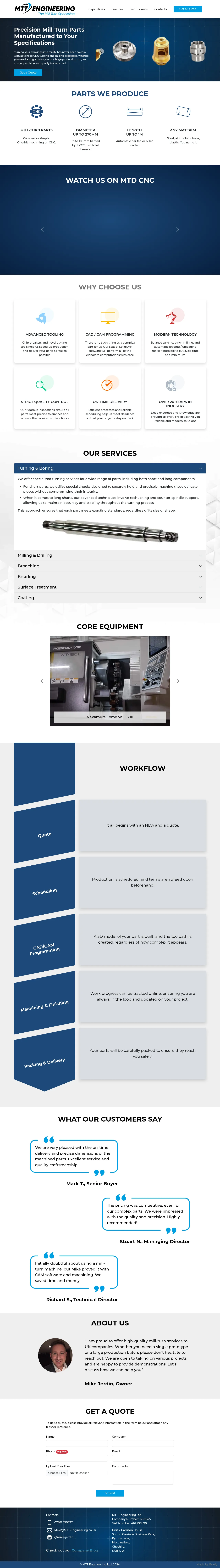 MTT Engineering Ltd is a UK-based manufacturing company specializing in precision mill-turn services. The company utilizes advanced CNC technology, including twin-spindle, twin-turret configurations, to produce complex components for various industries. Their capabilities encompass milling, turning, broaching, knurling, and comprehensive surface treatments. With a focus on efficiency, they manage projects from prototype to large production runs using sophisticated CAD/CAM programming. The company emphasizes rigorous quality control and reliable project scheduling to meet precise dimensional requirements.