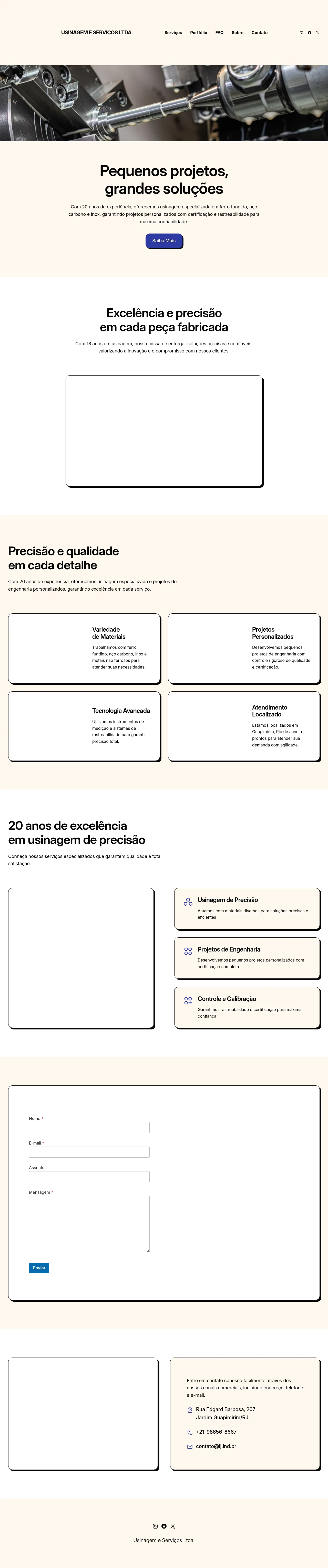 Usinagem e Serviços Ltda. is a precision machining company based in Guapimirim, Rio de Janeiro, with over 20 years of industry experience. The firm specializes in the manufacturing of custom metal components, offering engineering project development and high-precision machining services. They serve a diverse range of client needs by utilizing advanced measurement instruments and comprehensive quality control systems. Every project is supported by strict certification and material traceability protocols to ensure maximum reliability. The company is committed to delivering efficient, high-quality engineering solutions for both small-scale and complex industrial requirements.