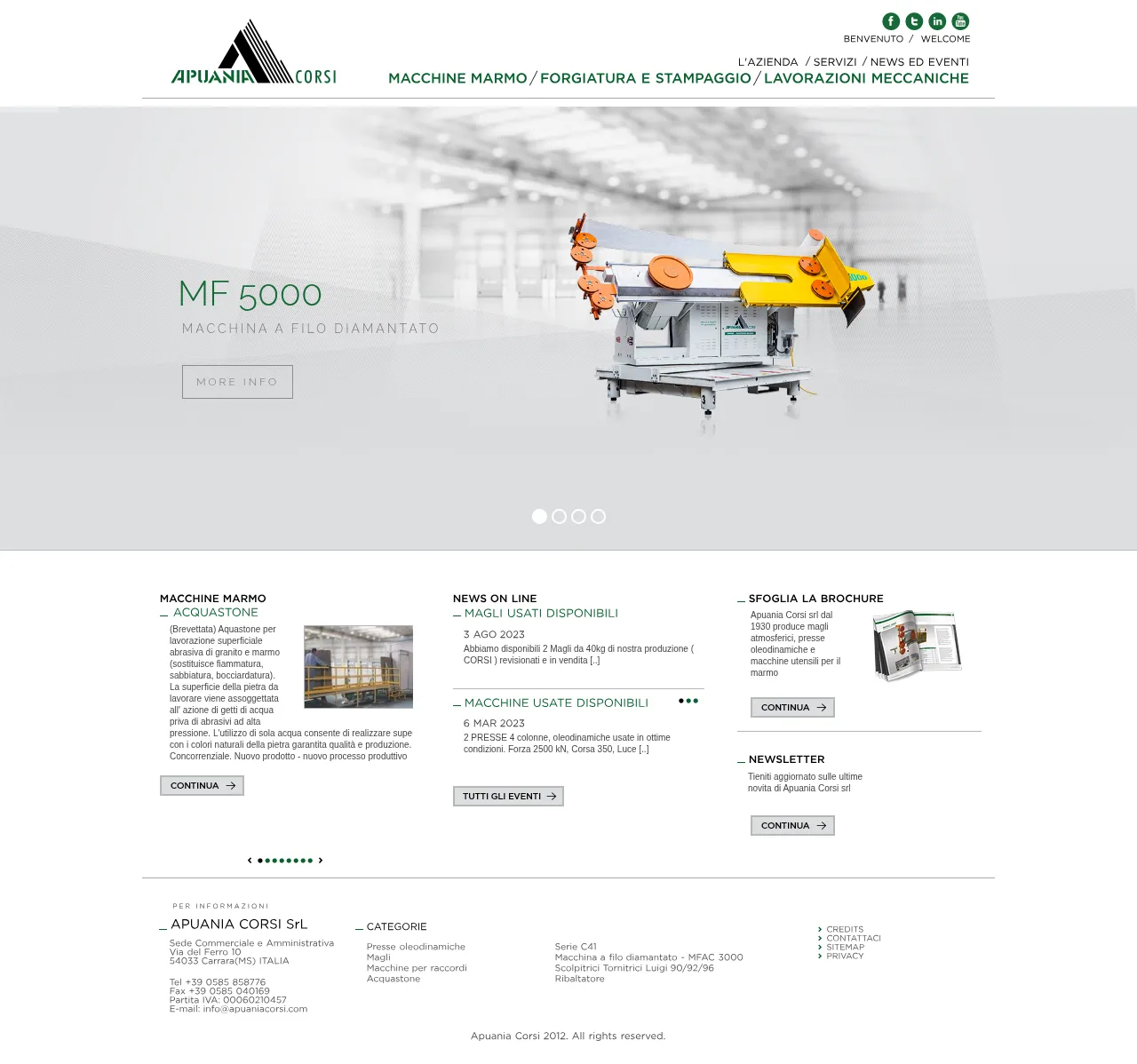 Apuania Corsi srl has been manufacturing industrial machinery since 1930, specializing in atmospheric hammers, hydraulic presses, and specialized marble processing equipment. The company serves various sectors including stone processing, metal forging, and pipeline component manufacturing. Key capabilities include high-precision mechanical machining, automated sculpture reproduction, and advanced surface treatments for stone. They provide bespoke engineering solutions and support services for both new and refurbished machinery. The firm emphasizes technical reliability, utilizing high-performance components and patented technological processes to ensure production efficiency.