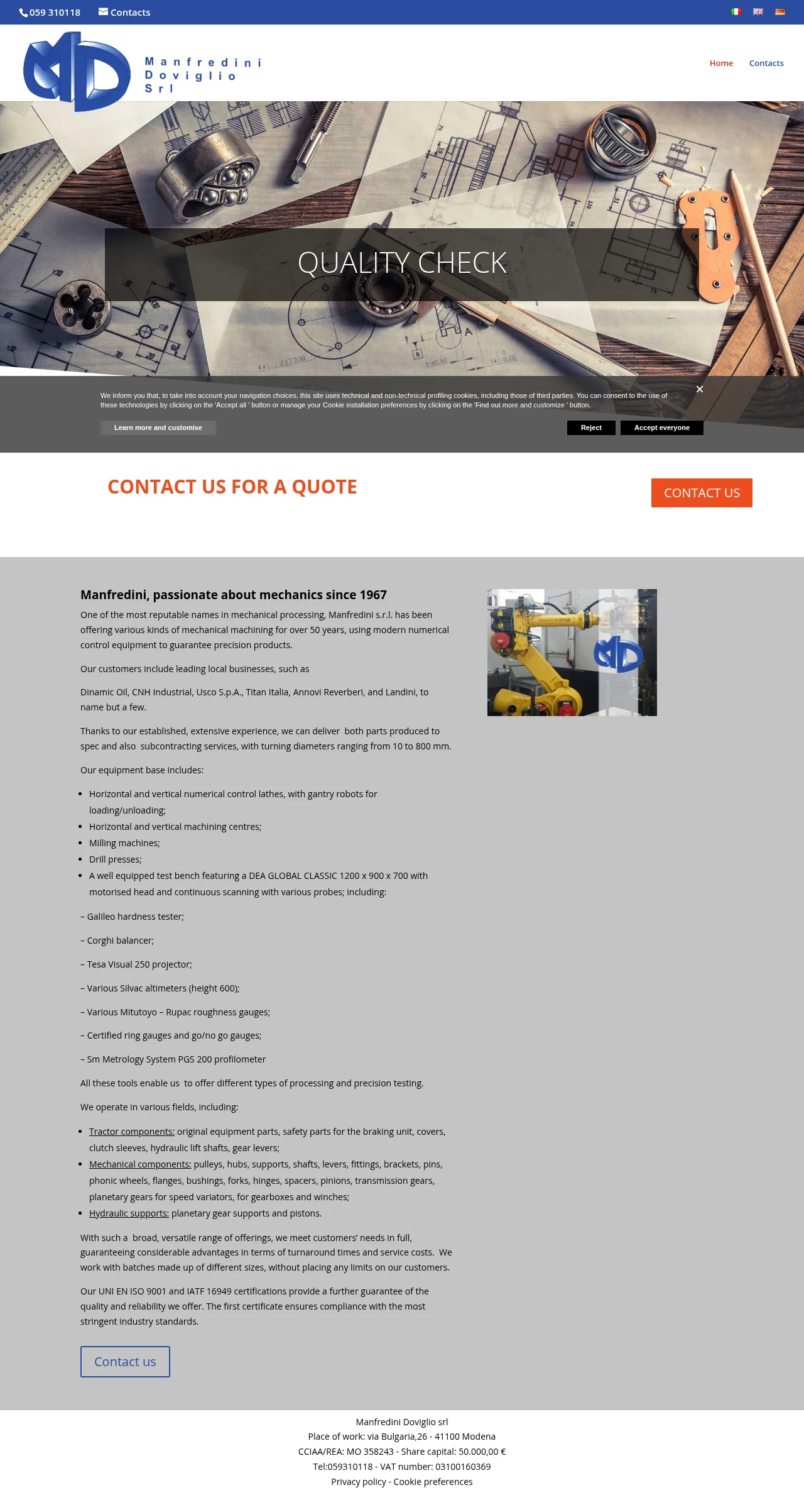 Manfredini Doviglio s.r.l. is a specialized mechanical machining facility with over 50 years of industry experience. The company provides high-precision components for sectors including agriculture, hydraulics, and general mechanical manufacturing. They leverage advanced numerical control technology to produce complex parts such as transmission gears, hydraulic supports, and engine components. Their commitment to quality is underscored by adherence to international standards and a robust metrology department. By serving both local and major industrial clients, the firm maintains a reputation for reliability in precision machining.