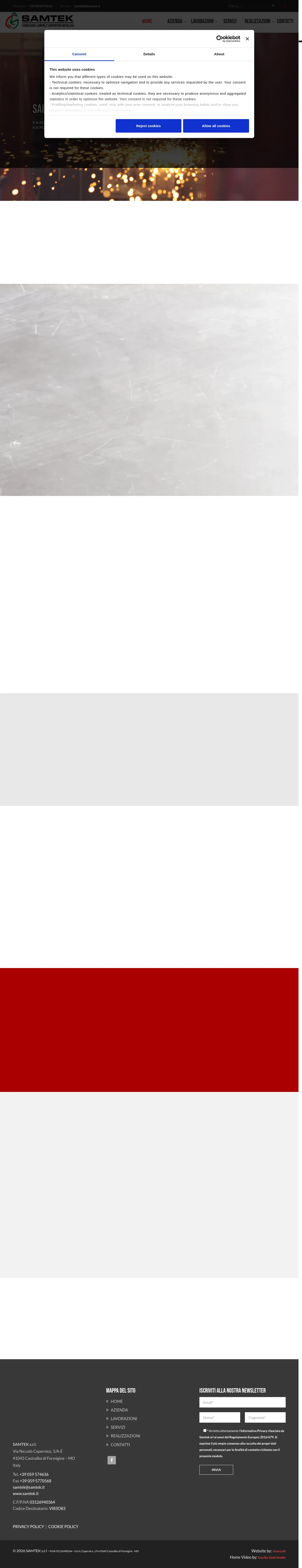 Samtek Srl is a metal fabrication and sheet metal processing company based in Casinalbo, Modena. The business specializes in a wide range of industrial metalworking services, including precision cutting, bending, and specialized welding. Serving diverse sectors such as agricultural machinery and thermal processing industries, the company provides comprehensive manufacturing solutions from raw components to finished assemblies. Their facility is equipped to handle complex projects involving turning, milling, and mechanical finishing. Samtek Srl is committed to delivering quality technical services through a combination of manual expertise and automated robotic processes.