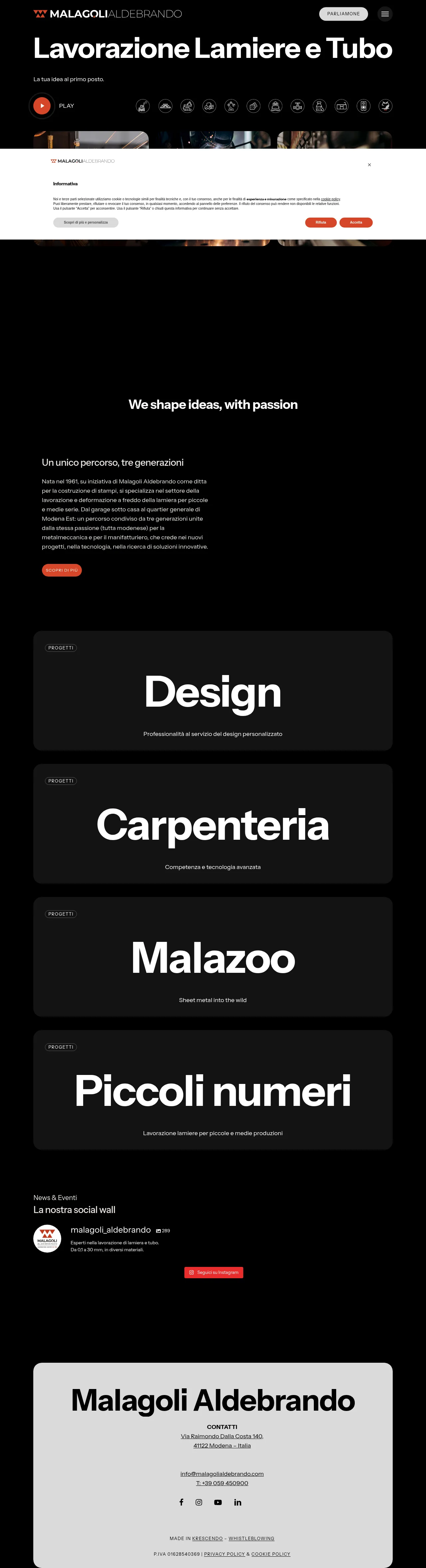 Malagoli Aldebrando is a third-generation metalworking company founded in 1961 that specializes in sheet metal and pipe machining. Operating from a 5,000-square-meter facility in Modena, the company provides comprehensive manufacturing solutions ranging from prototype development to small and medium-series production. Their technical capabilities include laser cutting, robotic welding, and precision metal forming for diverse applications. The firm serves various industrial sectors by combining traditional craftsmanship with advanced CNC processing and surface treatment services. They focus on delivering high-quality, customized metal components while maintaining rigorous internal quality standards.