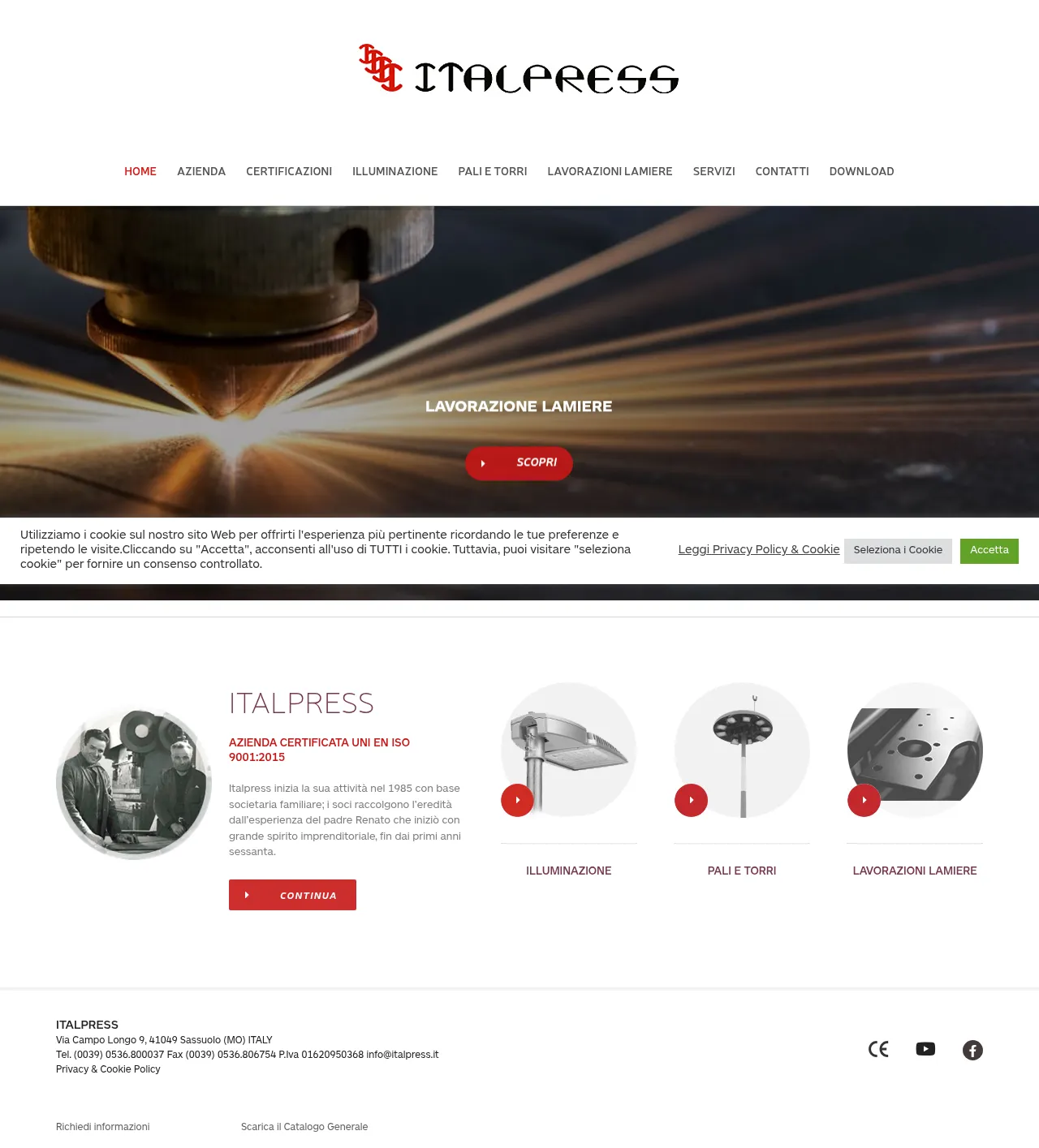 Italpress is an industrial manufacturing company specializing in the production of lighting infrastructure, including street lighting systems, towers, and masts. Established in 1985, the company leverages advanced metalworking capabilities to provide comprehensive services ranging from technical design and lighting engineering to assembly and maintenance. Their facility supports large-scale projects through CNC laser cutting, bending, punching, and welding processes. They serve both public and private sectors with a focus on high-quality structural components compliant with European standards. The company maintains a large, well-stocked warehouse to ensure efficient material sourcing and project delivery.