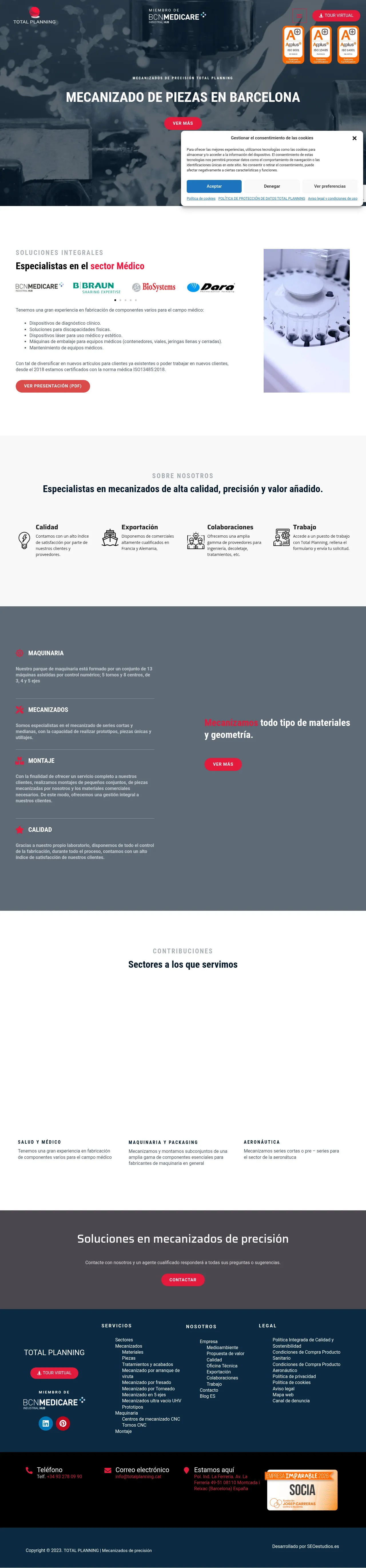 Total Planning is a precision machining company based in Barcelona, specializing in the manufacturing of high-quality components for diverse industrial sectors. Their expertise spans the medical, aerospace, automotive, telecommunications, and semiconductor industries, with a particular focus on medical device production and sub-assembly integration. The company operates a facility equipped with thirteen CNC machines, including both lathes and multi-axis machining centers. With an on-site laboratory for quality control, they provide comprehensive manufacturing services ranging from prototyping to production of short and medium series. Since 2018, the company has maintained compliance with specialized medical manufacturing standards.