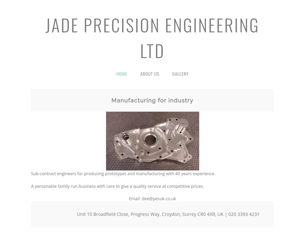 Unit 10 Broadfield Cl, Croydon CR0 4XR, UK, Croydon, England, United Kingdom of Great Britain and Northern Ireland07902 846312dee@pesuk.co.ukhttps://www.jadeprecisionengineering.co.uk/