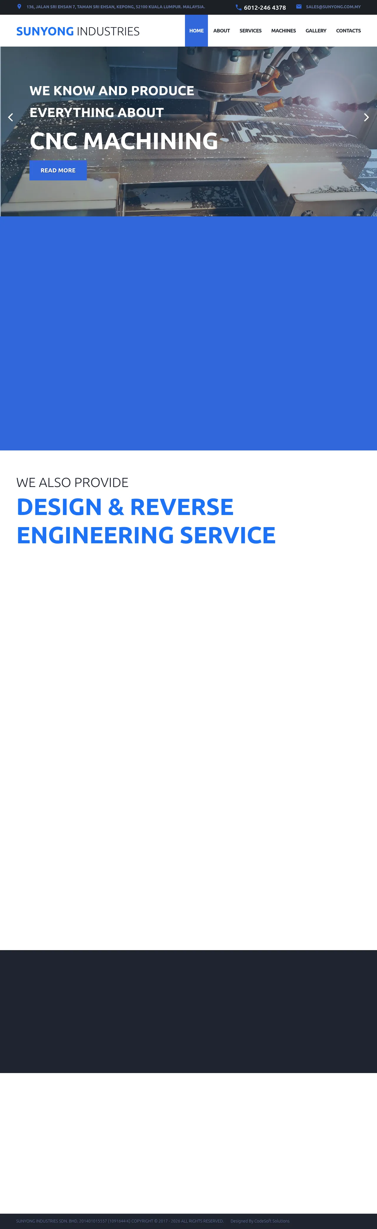 Sunyong Industries Sdn. Bhd. is a specialized one-stop CNC machining service provider based in Kuala Lumpur, Malaysia. Established in 1977, the company offers extensive manufacturing solutions including milling, turning, wirecut, and precision grinding services. They serve a diverse range of industries by leveraging advanced machinery to ensure high-quality production standards. With over four decades of industry experience, the firm is recognized for its commitment to technical precision and reliable product delivery. Their facility is equipped with specialized instrumentation to manage complex engineering requirements and maintain consistent quality control.