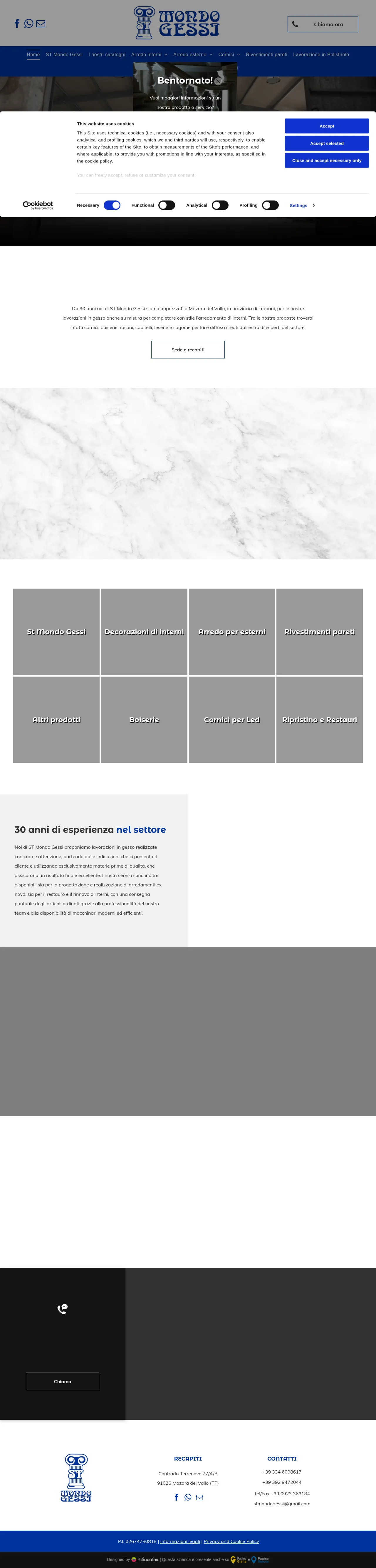 ST Mondo Gessi is a manufacturing company based in Mazara del Vallo, Italy, specializing in high-quality plaster and cement decorative elements. Since 1991, the firm has provided custom architectural solutions, including cornices, columns, moldings, and 3D decorative panels for residential and commercial interiors and exteriors. Their capabilities extend to the fabrication of bespoke gypsum work, lightweight polystyrene structures, and faux stone panels. The company collaborates with architects and private clients to deliver tailored design projects, ranging from large-scale restorations to ornamental detailing. Utilizing both traditional artisanal methods and modern production techniques, they ensure durability and aesthetic precision across all their decorative offerings.