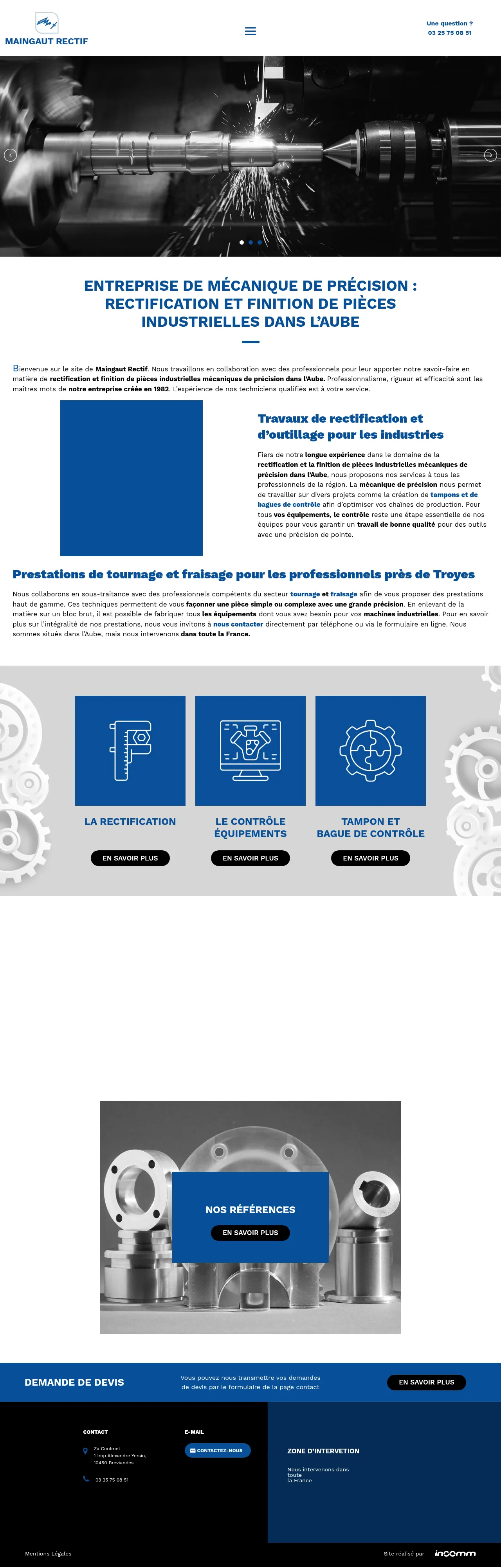 MAINGAUT RECTIF is a French industrial machining specialist providing precision manufacturing services for various sectors, including automotive, aerospace, medical, and food processing. The company offers a comprehensive range of capabilities such as CNC turning, milling, and surface grinding, supporting both conventional and computer-aided production methods. They are specifically recognized for the fabrication of industrial check rings and plugs, ensuring high-quality standards throughout the production process. Serving clients nationwide, the company emphasizes technical expertise, project management support, and consistent quality across all customer-provided material types. Their service approach is built on maintaining strict adherence to industrial project requirements from prototype to series production.