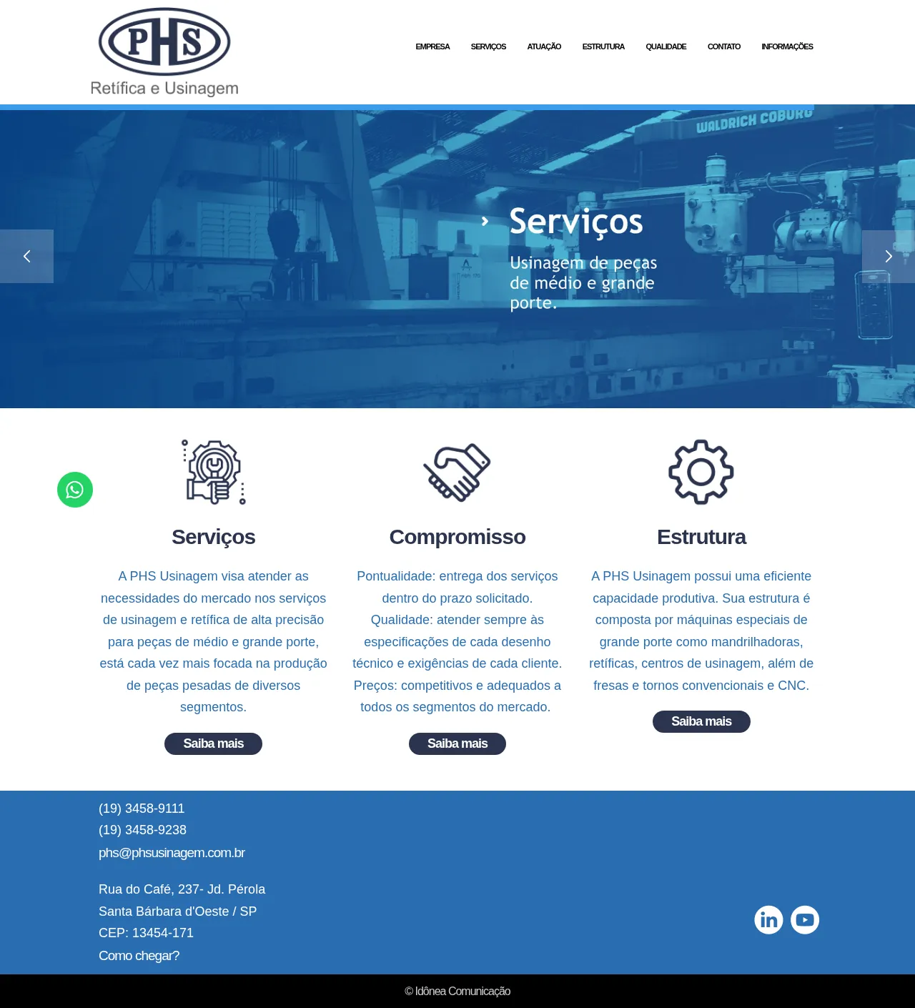 R. do Café, 237 - Jardim Perola, Santa Bárbara d'Oeste - SP, 13454-171, Brazil, Santa Bárbara d'Oeste, São Paulo, Federative Republic of Brazil(19) 3458-9111phs@phsusinagem.com.brhttp://www.phsusinagem.com.br/
