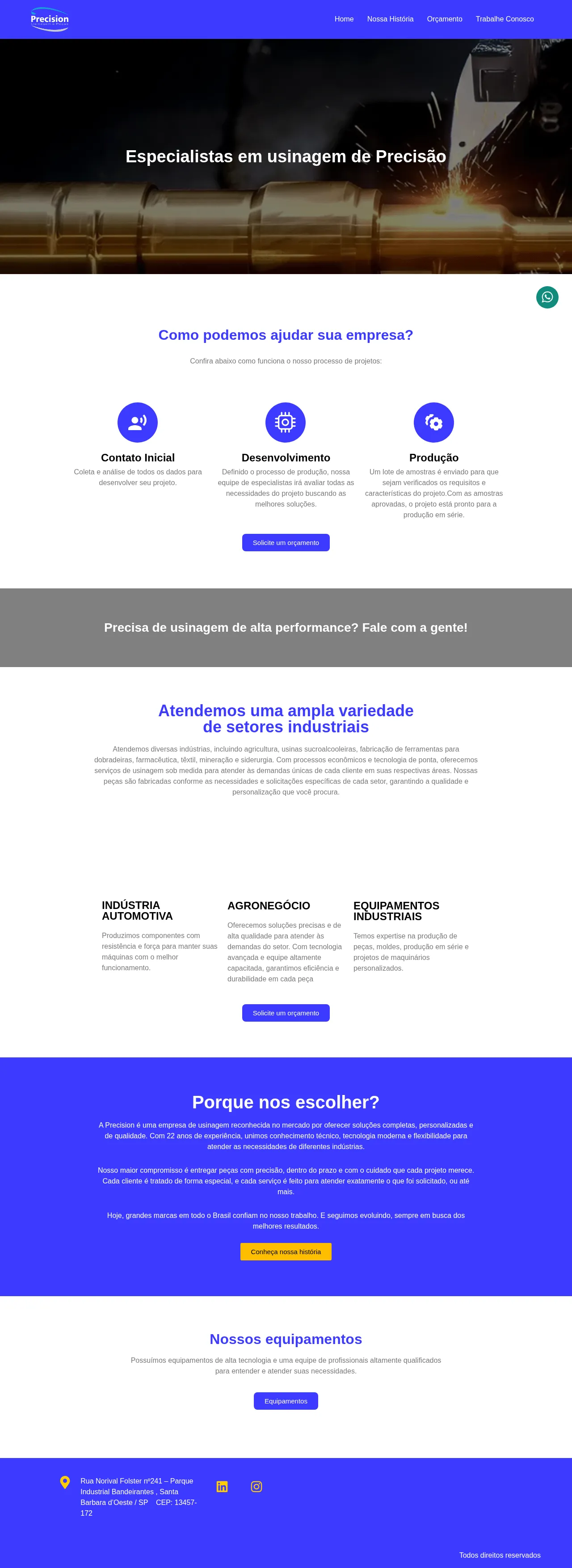 Precision is an industrial machining company with over two decades of experience providing customized manufacturing solutions. The company specializes in producing precision-engineered parts, molds, and serial components for sectors including automotive, agribusiness, pharmaceutical, textile, mining, and steel production. Its manufacturing process integrates professional technical analysis, project prototyping, and high-volume production to ensure consistency and quality. Precision utilizes advanced machinery to deliver durable, custom-designed industrial components tailored to specific client requirements. The firm maintains a strong focus on project-based manufacturing, prioritizing technical precision and adherence to strict delivery timelines.