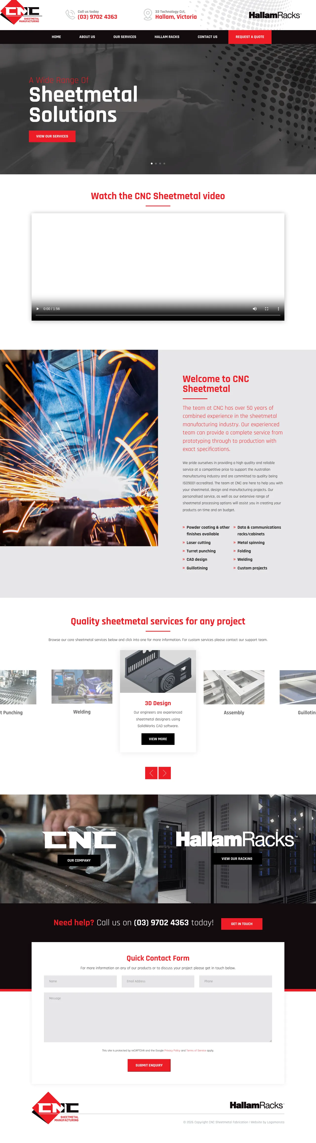 CNC Manufacturing (Aust) Pty Ltd, operating under the brands CNC Sheetmetal and CNC Metal Spinners, provides comprehensive sheet metal fabrication and metal spinning services from its facility in Hallam, Victoria. With over 50 years of collective industry experience, the company supports manufacturers through prototyping and production services, including laser cutting, turret punching, and various welding processes. They specialize in metal forming and assembly, offering additional value-added services such as powder coating, galvanizing, and electroplating. The business also operates the Hallam Racks division, producing server and data racks for the IT industry. Their operations are designed to provide a one-stop-shop approach, assisting clients from initial design through to finished product delivery.