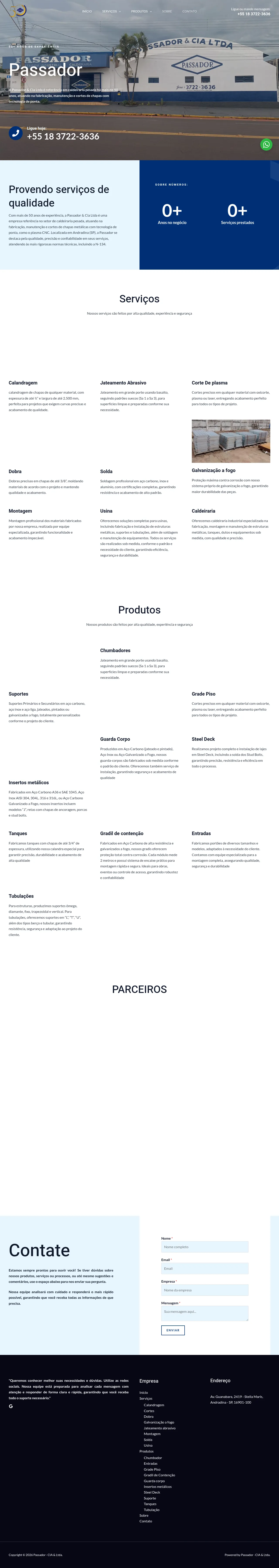 Passador is an industrial manufacturer with over 50 years of experience specializing in heavy boiler making, structural steel fabrication, and maintenance. The company provides custom-engineered solutions for the industrial and power plant sectors, including the production of tanks, piping, metallic structures, and specialized hardware. Its core capabilities encompass sheet metal processing, precision cutting, welding, and surface treatments, including industrial galvanization. By utilizing advanced technology and a skilled workforce, the firm ensures that all products meet high standards for safety, durability, and project-specific requirements. The company emphasizes a client-focused approach, delivering tailored fabrication and installation services to ensure operational efficiency.
