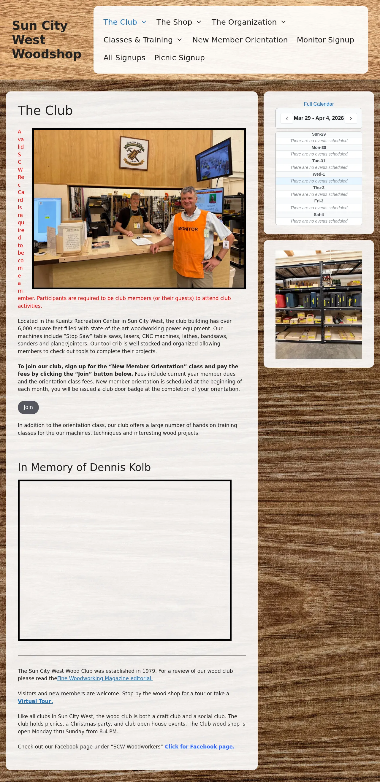 The Sun City West Woodshop is a dedicated woodworking facility established in 1979 to support hobbyists and skilled craftsmen. Located within the Kuentz Recreation Center, the club provides over 6,000 square feet of workspace equipped with professional-grade machinery. Members have access to a comprehensive tool crib, educational resources, and training programs for various wood fabrication techniques. Beyond its technical capabilities, the club functions as a social organization that hosts community events, meetings, and project collaborations. The facility is managed by members to ensure a safe and productive environment for all woodworking skill levels.