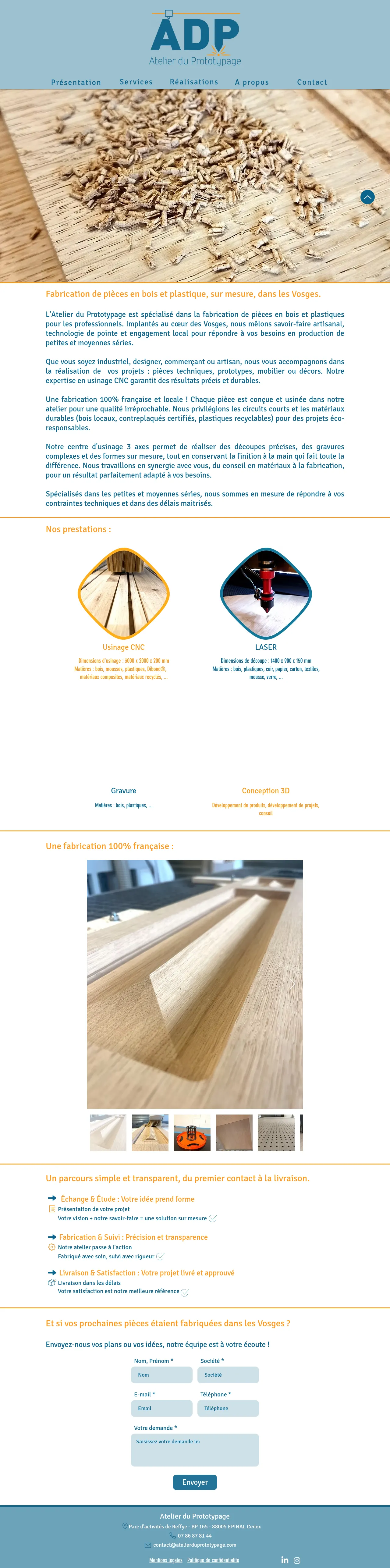 Atelier du Prototypage is a specialized manufacturing facility located in the Vosges region of France. The company focuses on the bespoke production of prototypes and custom parts, offering services ranging from product development to professional design consultancy. Their technical capabilities include CNC machining, 3D design, precision engraving, and laser processing. They serve a wide range of industrial and creative applications by working with diverse materials such as wood, plastics, and various composite foams. The firm emphasizes a transparent project management approach, ensuring high-quality craftsmanship and consistent delivery timelines for its clients.