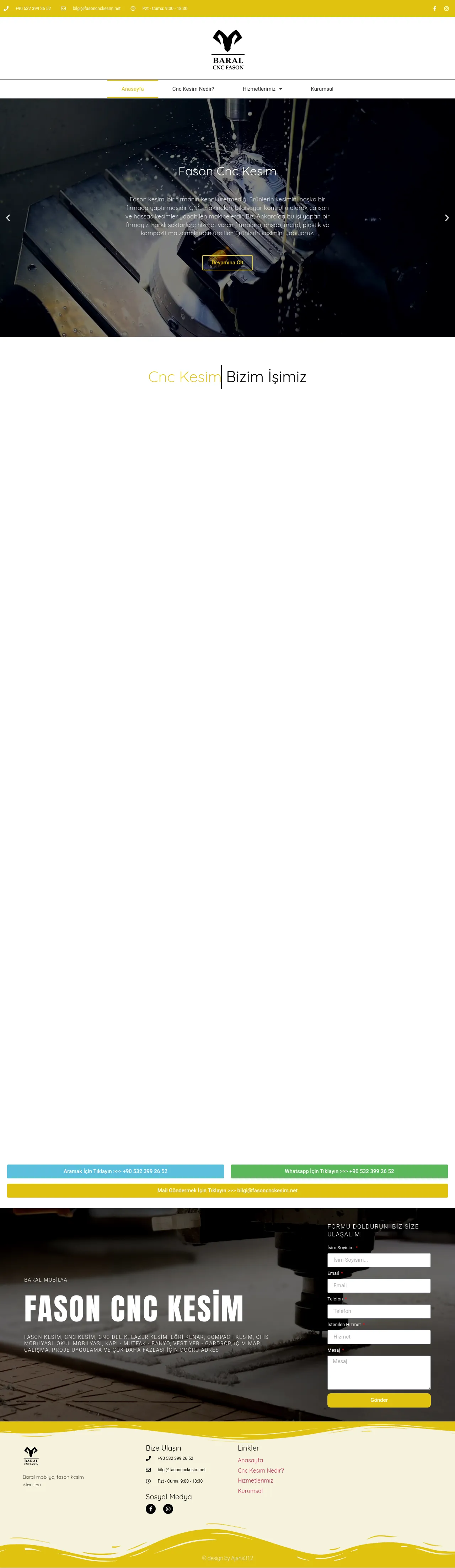 Baral Mobilya is a subcontract production specialist based in Ankara offering CNC and laser cutting services. The company processes wood, metal, plastic, composite and glass for furniture, machine parts, signage and other applications. Additional services include compact panel cutting, curved-edge profiling and project implementation for office, school and interior furniture such as doors, kitchens, bathrooms and wardrobes.