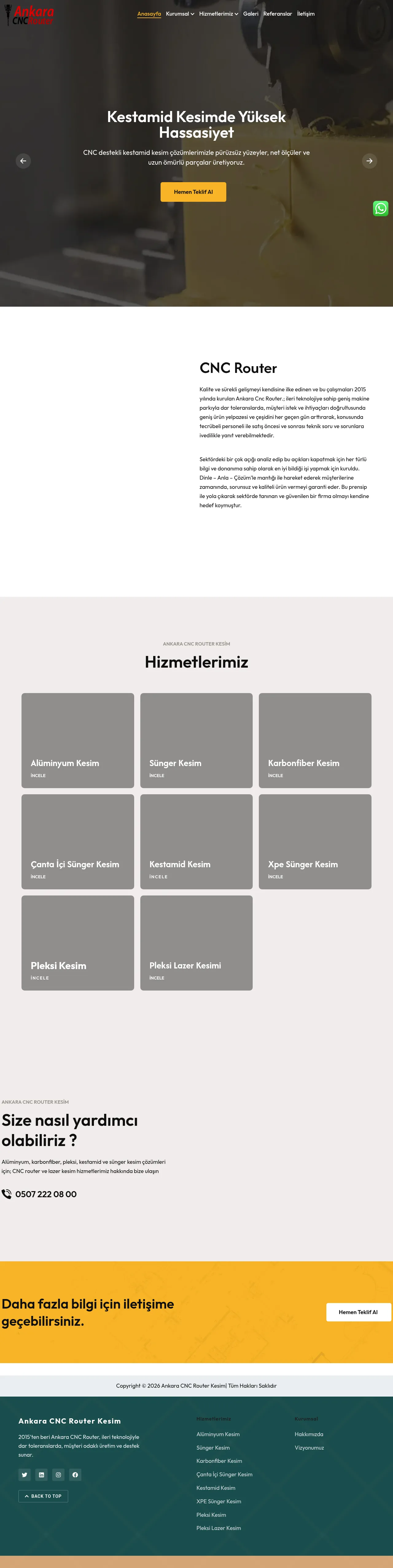 Ankara CNC Router, established in 2015, provides CNC routing and laser cutting services from its Ankara facility. The company operates a modern machine park to produce precision parts for a range of materials including aluminum, carbon fiber, acrylic and various foams. It offers both production and technical support before and after sales and focuses on meeting customer specifications within tight tolerances.