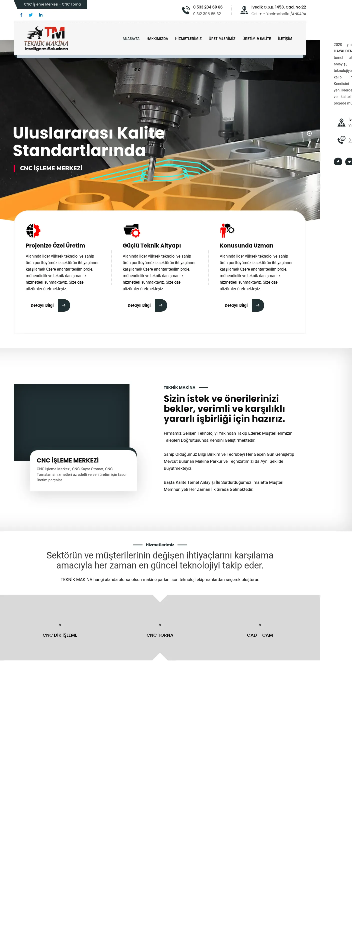 Teknik Makina is a CNC machining and contract manufacturing company that provides design-to-production services, including turnkey projects, engineering and technical consultancy. The company operates CNC machining centers, turning and milling equipment and offers CAD/CAM programming, 3D scanning and additive manufacturing for prototypes, small-series and serial production. It serves industries such as automotive, medical, defense and aerospace and emphasizes customer-focused, technology-driven production.