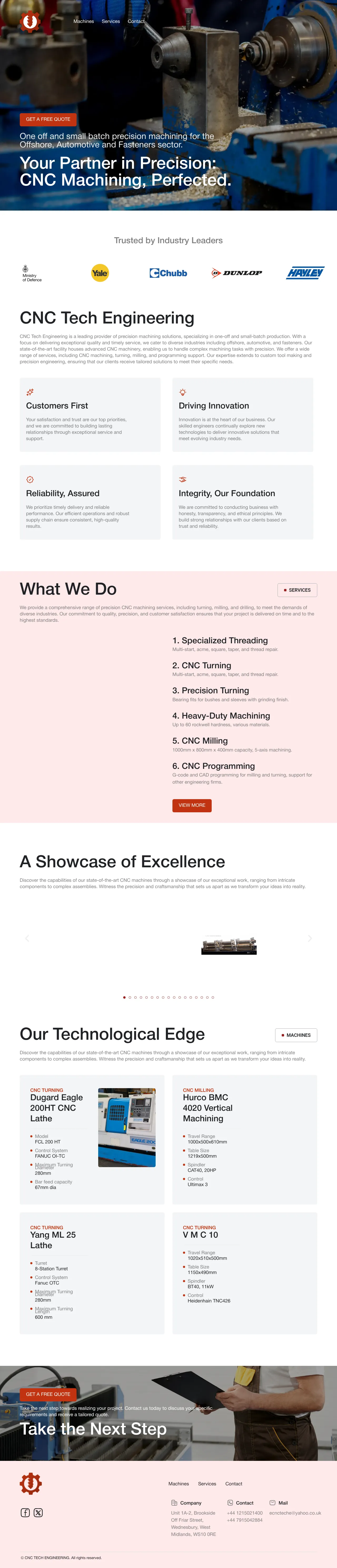 CNC Tech Engineering provides precision machining services for one-off and small-batch production across sectors such as offshore, automotive and fasteners. The company operates advanced CNC equipment to undertake turning, milling, drilling and complex multi-axis work. It also offers programming support, custom toolmaking and specialist threading and repair services to deliver tailored engineering solutions.