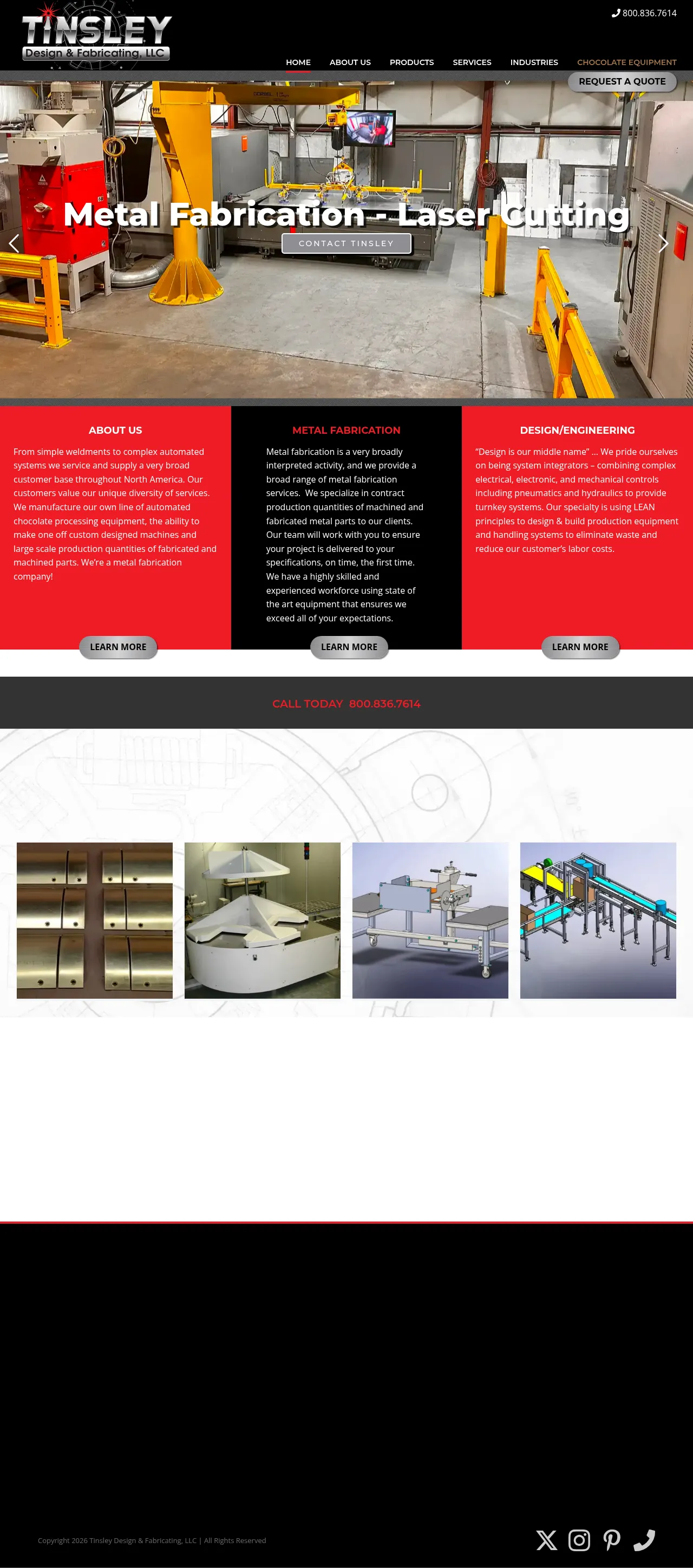 Tinsley Design and Fabricating provides comprehensive metal fabrication, precision machining, and custom engineering services for a diverse range of industries, including food processing, pharmaceutical, defense, and transportation. The company specializes as a system integrator, offering turnkey solutions that combine mechanical, electrical, and pneumatic controls with high-quality fabrication. Their expertise spans from custom-designed production machinery and material handling systems to specialized stainless steel components for commercial and industrial applications. By applying lean manufacturing principles and value-driven engineering, they provide efficient, cost-effective solutions for both high-volume production and complex, one-off projects. Tinsley maintains a strong focus on custom equipment, including chocolate processing machinery, while also offering emergency repair and restoration services.