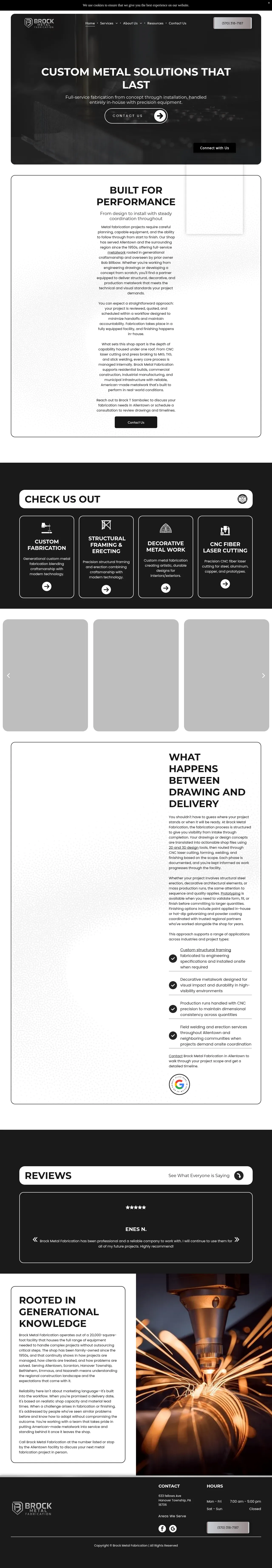 Brock Metal Fabrication is a family-owned metalworking shop based in Hanover Township, PA, with a history of operation dating back to the 1950s. The company provides comprehensive metal fabrication services, including design, cutting, welding, and installation for residential, commercial, industrial, and municipal sectors. Their facility is equipped for both small-scale prototypes and high-volume production runs. Key capabilities include CNC fiber laser cutting, structural framing, and custom decorative metalwork. They emphasize a streamlined workflow that integrates engineering support with in-house fabrication and finishing processes.