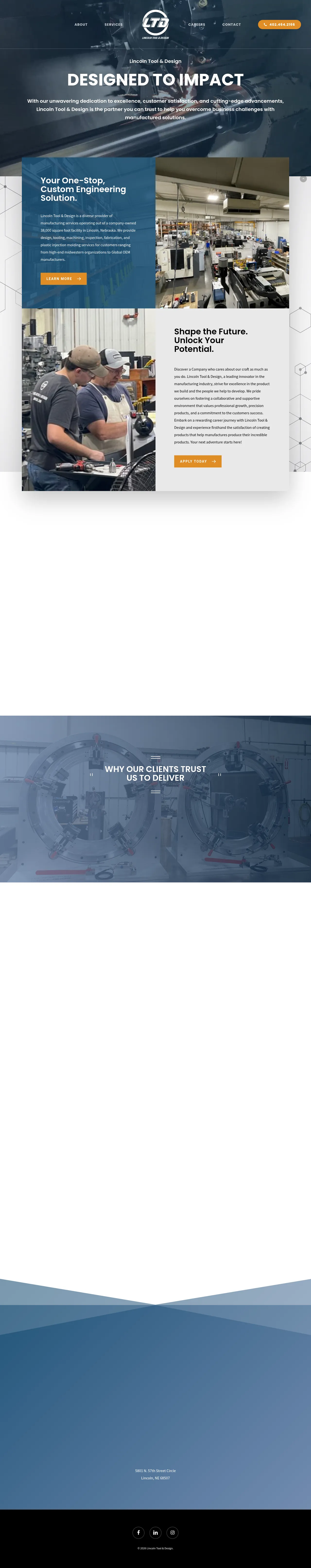 Lincoln Tool and Design provides precision machining and plastic injection molding services, along with mold design, tooling and secondary assembly operations. The company designs and manufactures molds and custom tooling, supports production runs and inspection, and delivers turnkey custom machines and fixtures. Their capabilities include CNC machining, grinding, metal stamping die work and robotic welding fixtures to support prototyping through volume production.