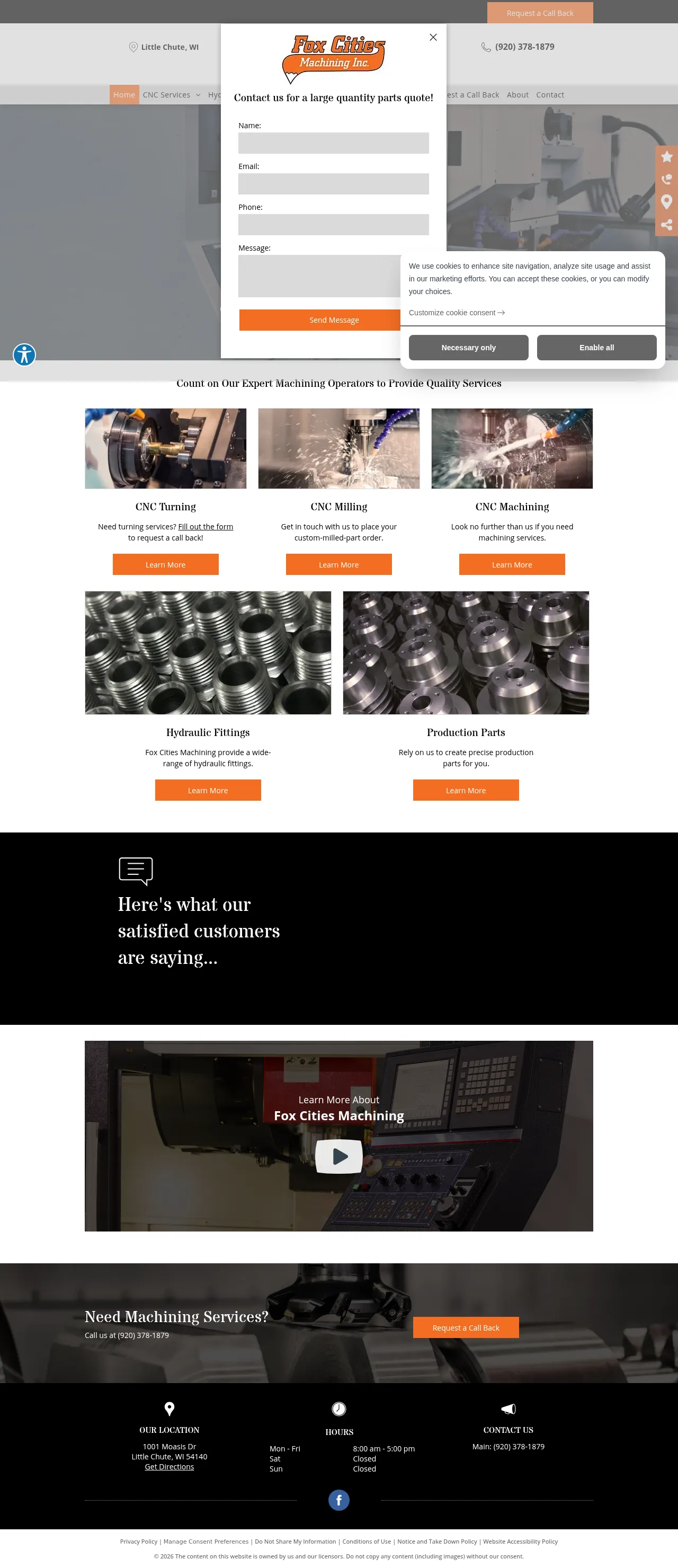 1001 Moasis Dr, Little Chute, WI 54140, USA, Appleton, Wisconsin, United States(920) 378-1879https://www.foxcitiesmachining.com/