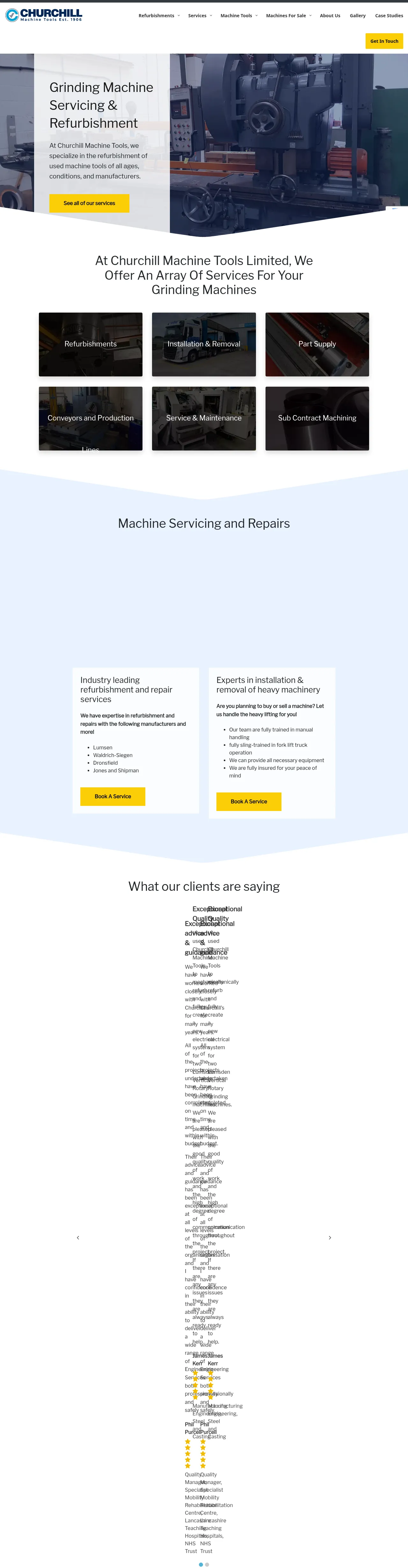 Machine Tool RefurbishmentMachine Maintenance and ServicingSub-Contract MachiningEquipment Installation and RemovalCylindrical GrindingCentreless GrindingElectrical System UpgradesHMI IntegrationNew and Used Machine Sales