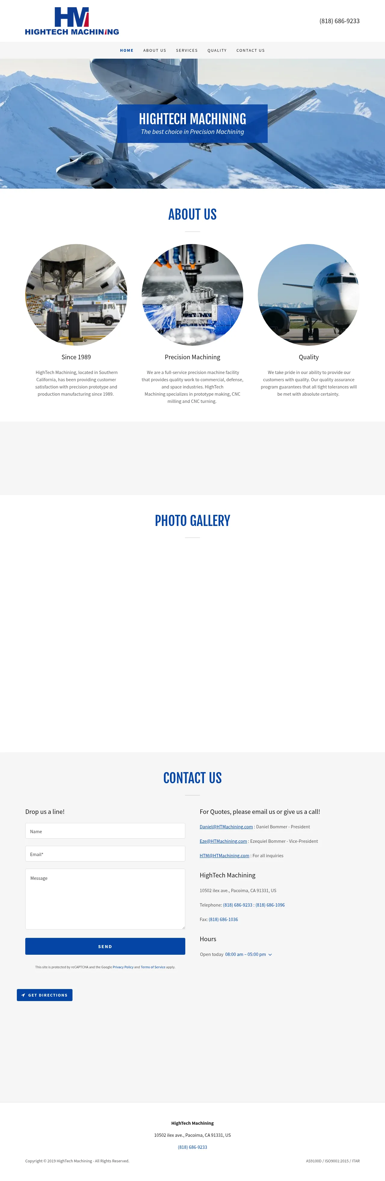 HighTech Machining is a precision manufacturing company established in 1989. The company specializes in aerospace-grade precision machining services with a strong focus on quality control and assurance. They maintain rigorous internal procedures to ensure compliance with the latest industry revisions and standards. With a well-equipped facility, they handle complex machining requirements for industrial and aviation applications. Their operations are supported by a dedicated team of professionals committed to precision and procedural reliability.