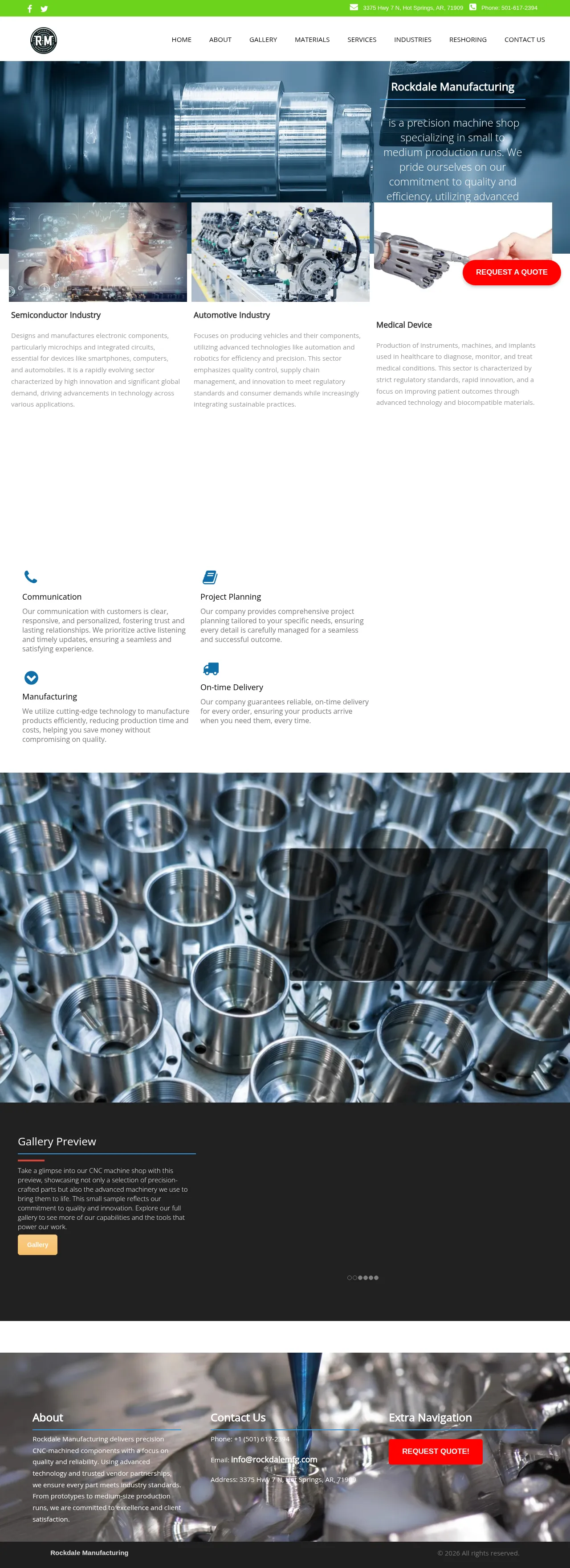 Rockdale Manufacturing is a precision CNC machine shop located in Hot Springs, Arkansas, specializing in the production of complex components for industries including aerospace, medical devices, automotive, and semiconductors. The company provides a range of manufacturing capabilities such as CNC milling, CNC turning, CAD/CAM design, and prototyping. By utilizing advanced technology and established vendor partnerships, they maintain high standards of quality and consistency for both prototypes and medium-size production runs. They emphasize comprehensive project planning, reliable delivery schedules, and clear communication throughout the manufacturing lifecycle.