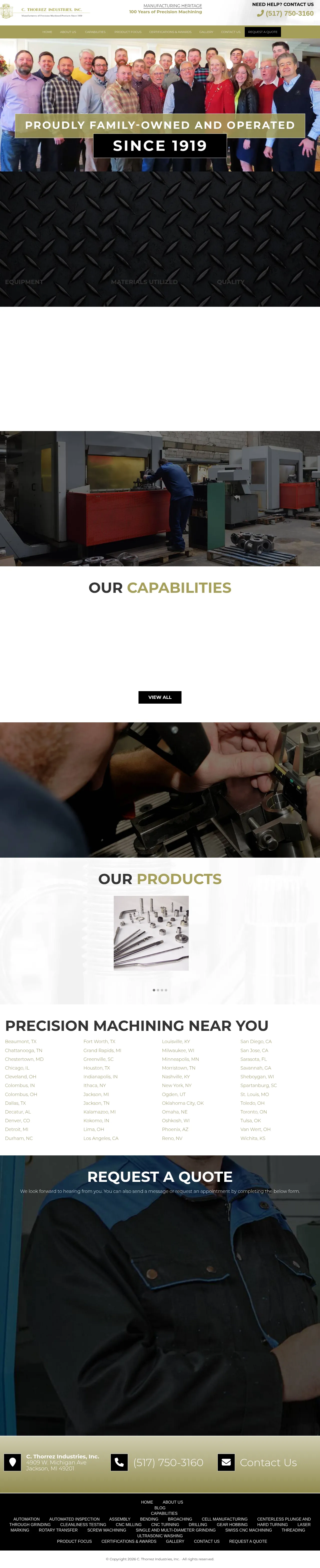 C. Thorrez Industries, Inc. is a precision machining provider with over 100 years of experience in the manufacturing sector. Operating through multiple plant facilities in Jackson, Michigan, the company specializes in a diverse range of CNC machining and metal processing services. Their expertise spans automated production, assembly, and precision finishing to support demanding industrial applications. The company maintains a strong commitment to quality, backed by industry-standard certifications and a reputation for consistent performance. Their manufacturing operations are entirely non-union, emphasizing high employee retention and technical proficiency.