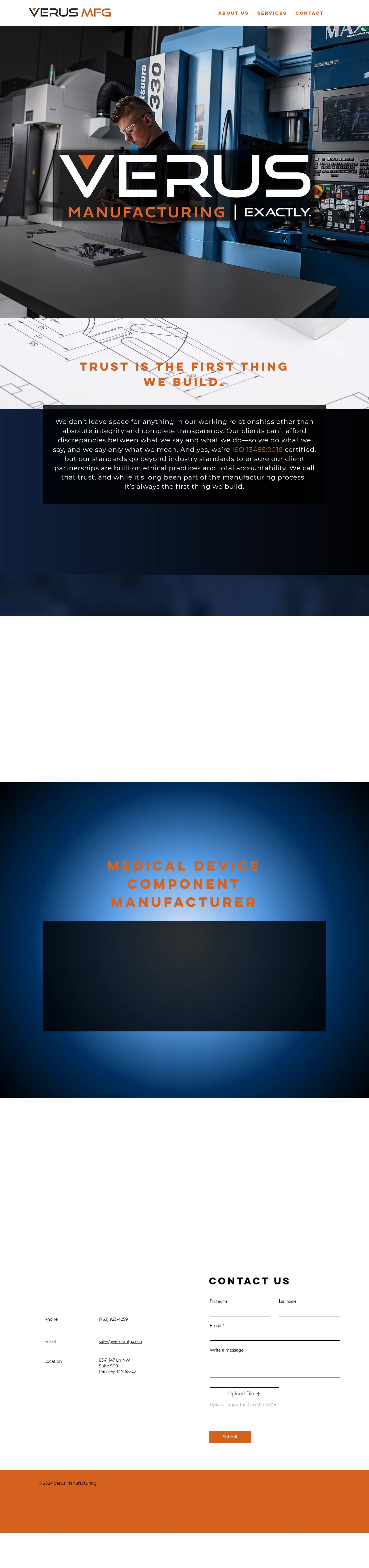 VERUS Manufacturing is a contract manufacturer specializing in the production of medical device components. Operating from a 10,000-square-foot facility in Ramsey, Minnesota, the company provides integrated manufacturing solutions ranging from prototype development to full-scale production. Their capabilities include complex multi-axis machining and precision milling supported by rigorous quality assurance systems. The company emphasizes a culture of transparency, integrity, and reliable engineering support. They serve the medical industry by maintaining high standards for precision and scalability.