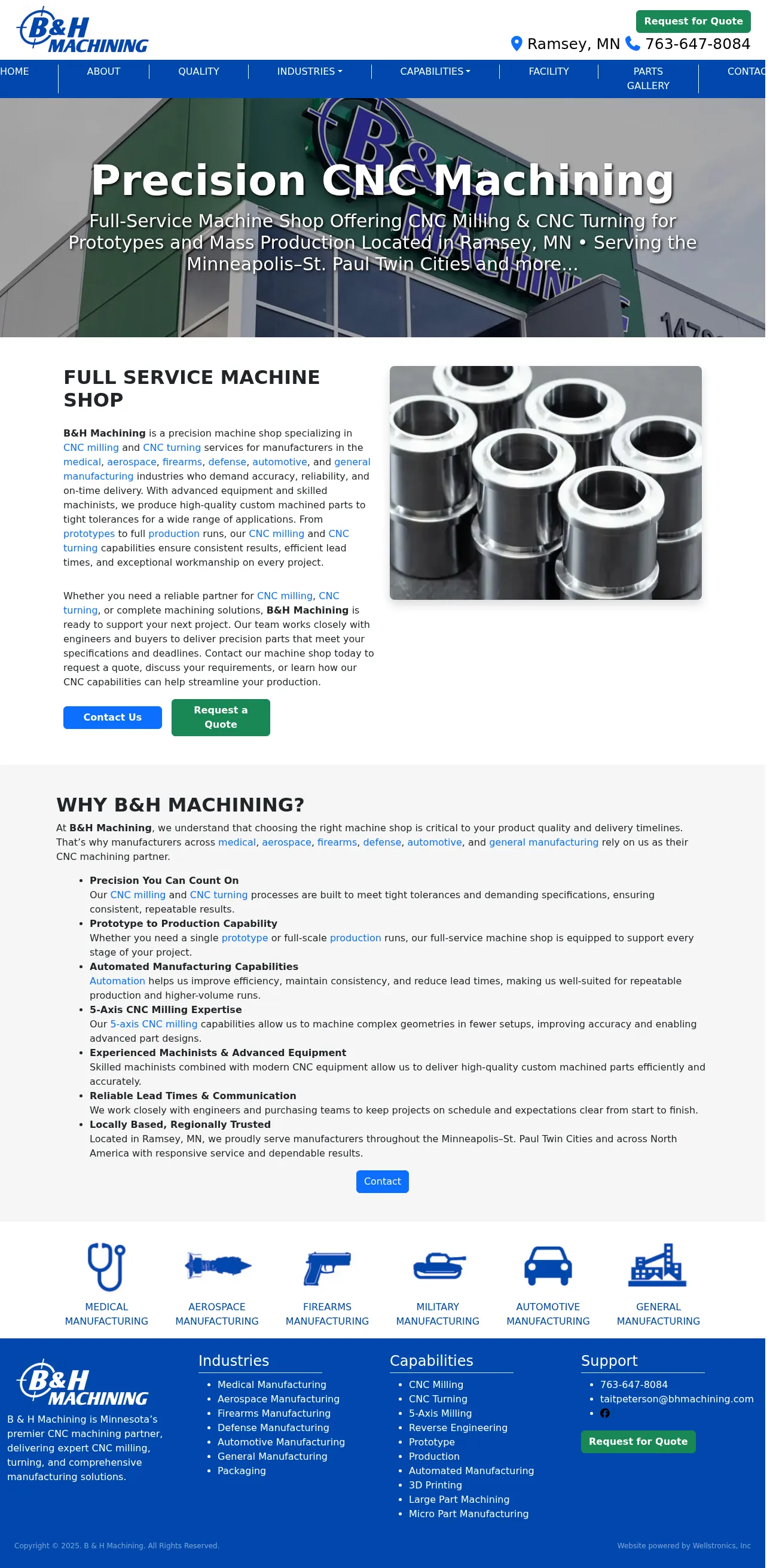 B&H Machining is a family-owned CNC machine shop based in Ramsey, Minnesota, providing precision manufacturing services since 2014. The company serves clients across the medical, aerospace, defense, automotive, and general manufacturing industries with capabilities ranging from prototypes to high-volume production. Their facility utilizes modern CNC technology, including 5-axis milling and automated systems, to achieve tight tolerances and consistent quality. By integrating Statistical Process Control (SPC) and maintaining rigorous quality standards, they ensure reliable results for complex geometries. The team prioritizes clear communication and responsive project management to support engineering and purchasing requirements.