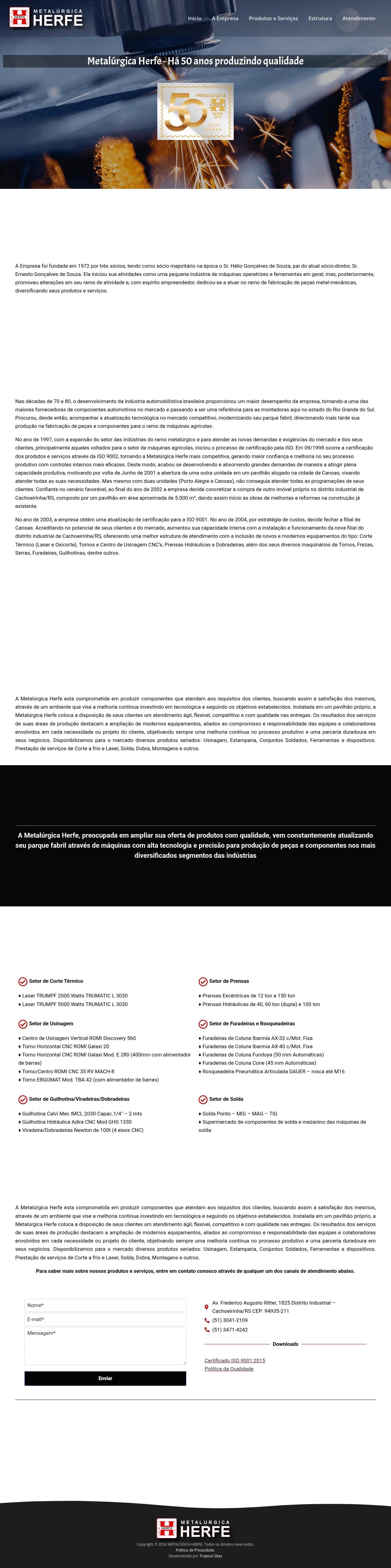 Av. Frederico Augusto Ritter, 1825 - Distrito Industrial, Cachoeirinha - RS, 94935-211, Brazil, Cachoeirinha, Rio Grande do Sul, Federative Republic of Brazil(51) 3041-2109http://www.metalurgicaherfe.com.br/