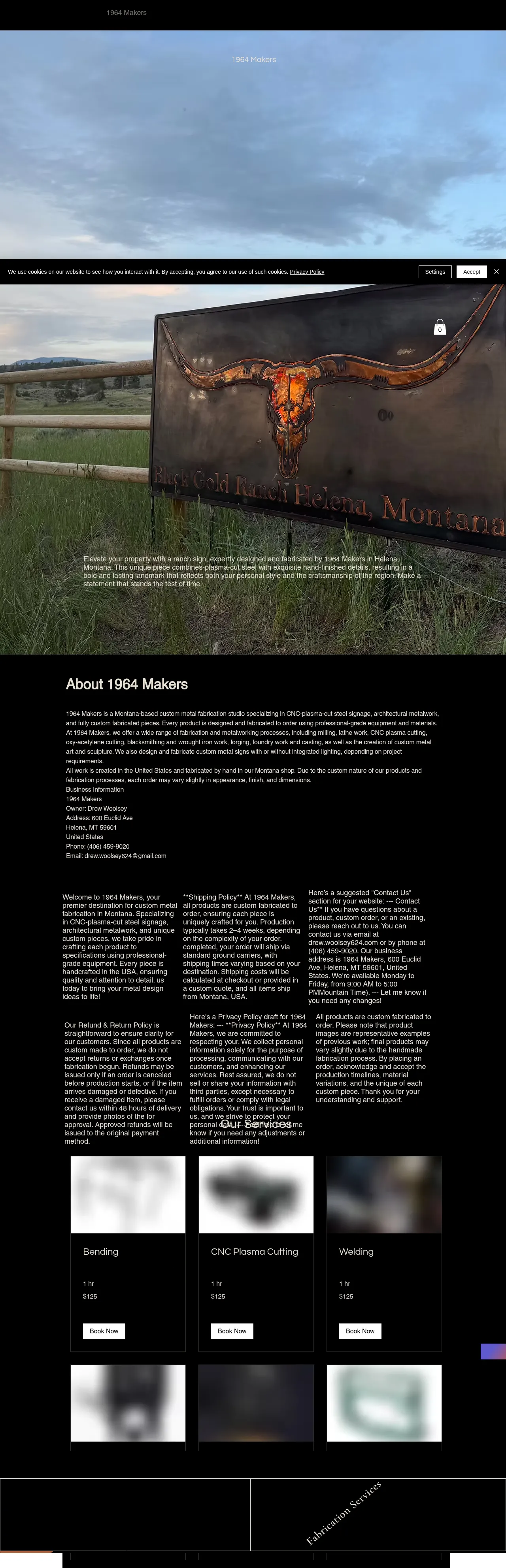 1964 Makers is a custom metal fabrication studio based in Helena, Montana, specializing in architectural metalwork and bespoke steel creations. The company offers a wide range of production services, including CNC plasma cutting, welding, milling, and blacksmithing. Their primary output includes custom signage, metal art, and unique sculptural pieces tailored to client specifications. Every project is handcrafted within their Montana shop, emphasizing attention to detail and professional-grade construction. The business serves both individual and commercial clients seeking high-quality, custom-fabricated metal solutions.