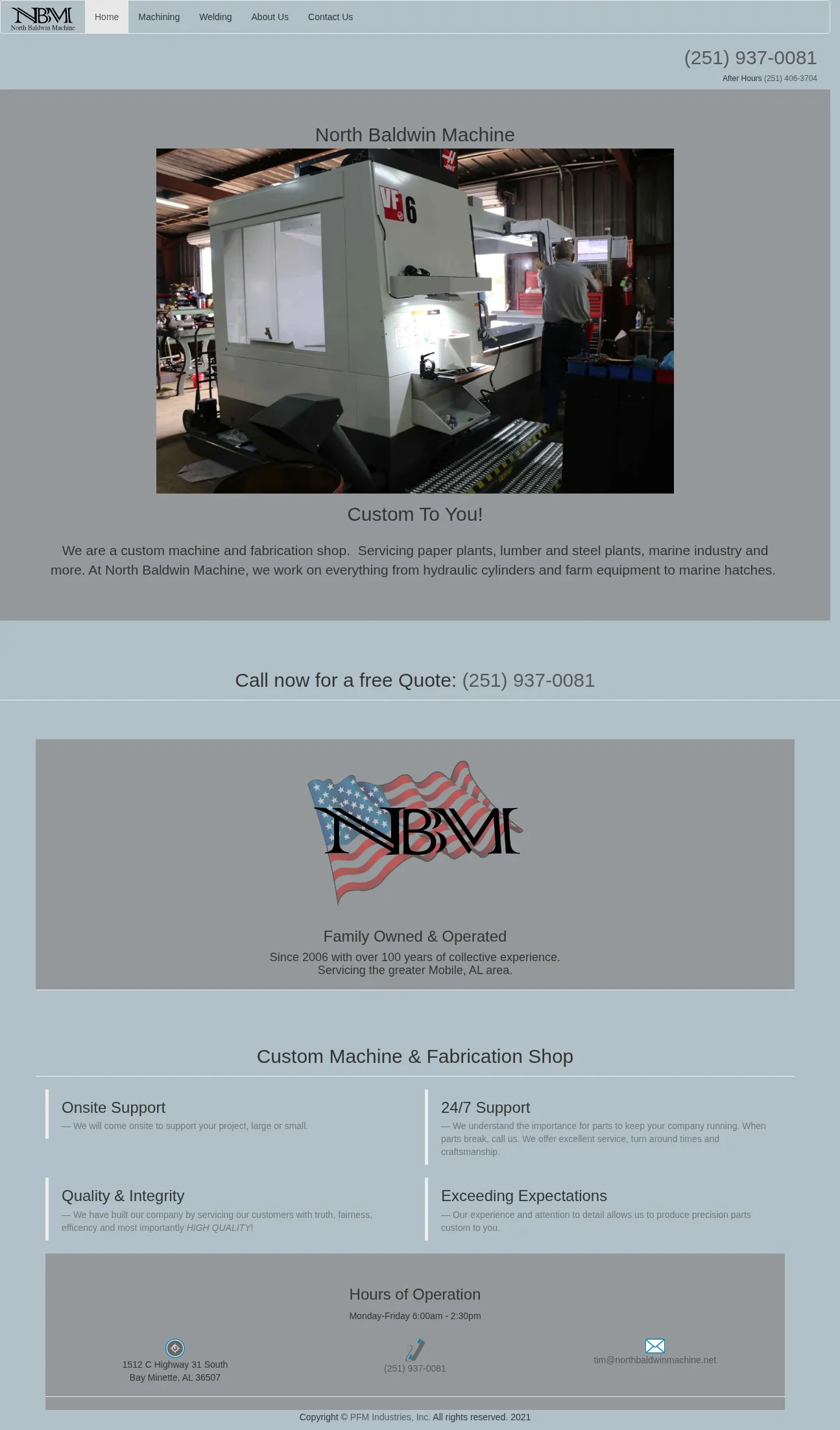 North Baldwin Machine is a precision machining and fabrication provider located in Bay Minette, Alabama. The company specializes in custom part manufacturing, welding, and onsite technical support for a variety of industrial applications. Known for its commitment to fairness and efficient service, the firm focuses on delivering rapid turnaround times to help clients minimize equipment downtime. Their experienced team manages projects of all sizes, ensuring high-quality craftsmanship through meticulous attention to detail. The company provides both shop-based fabrication and field-service support to accommodate diverse operational needs.