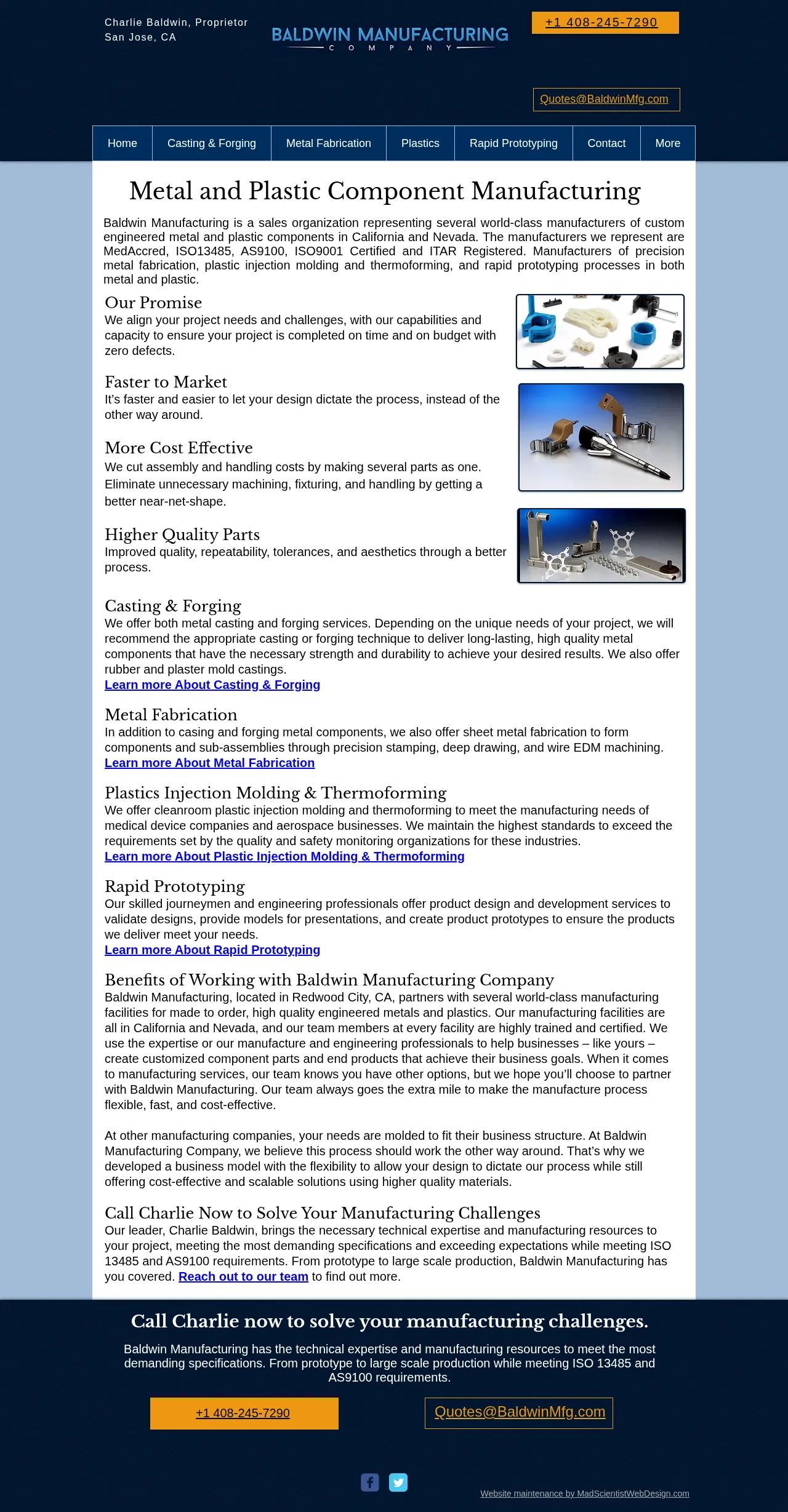 Baldwin Manufacturing provides comprehensive engineering and production services, ranging from initial prototyping to large-scale industrial manufacturing. The company specializes in metal casting, forging, sheet metal fabrication, and cleanroom plastic injection molding. They serve demanding sectors including the medical device and aerospace industries by maintaining rigorous quality standards. Their business model emphasizes design-led manufacturing processes that offer scalable, cost-effective, and precise production solutions. Leveraging technical expertise in project management and engineering, the firm focuses on delivering customized components with high repeatability and aesthetic quality.