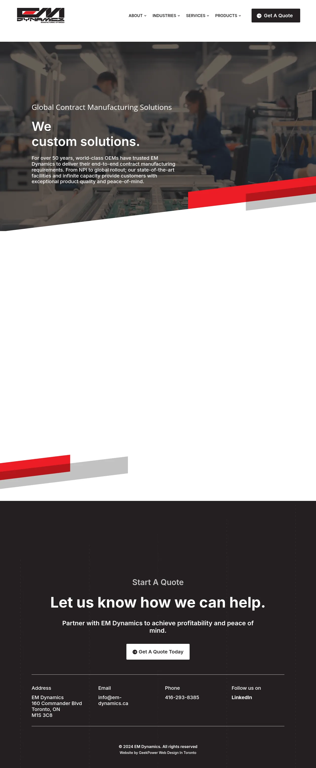 160 Commander Blvd, Scarborough, ON M1S 3C8, Canada, Agincourt North, Ontario, Canada(416) 293-8385info@em-dynamics.cahttps://em-dynamics.ca/