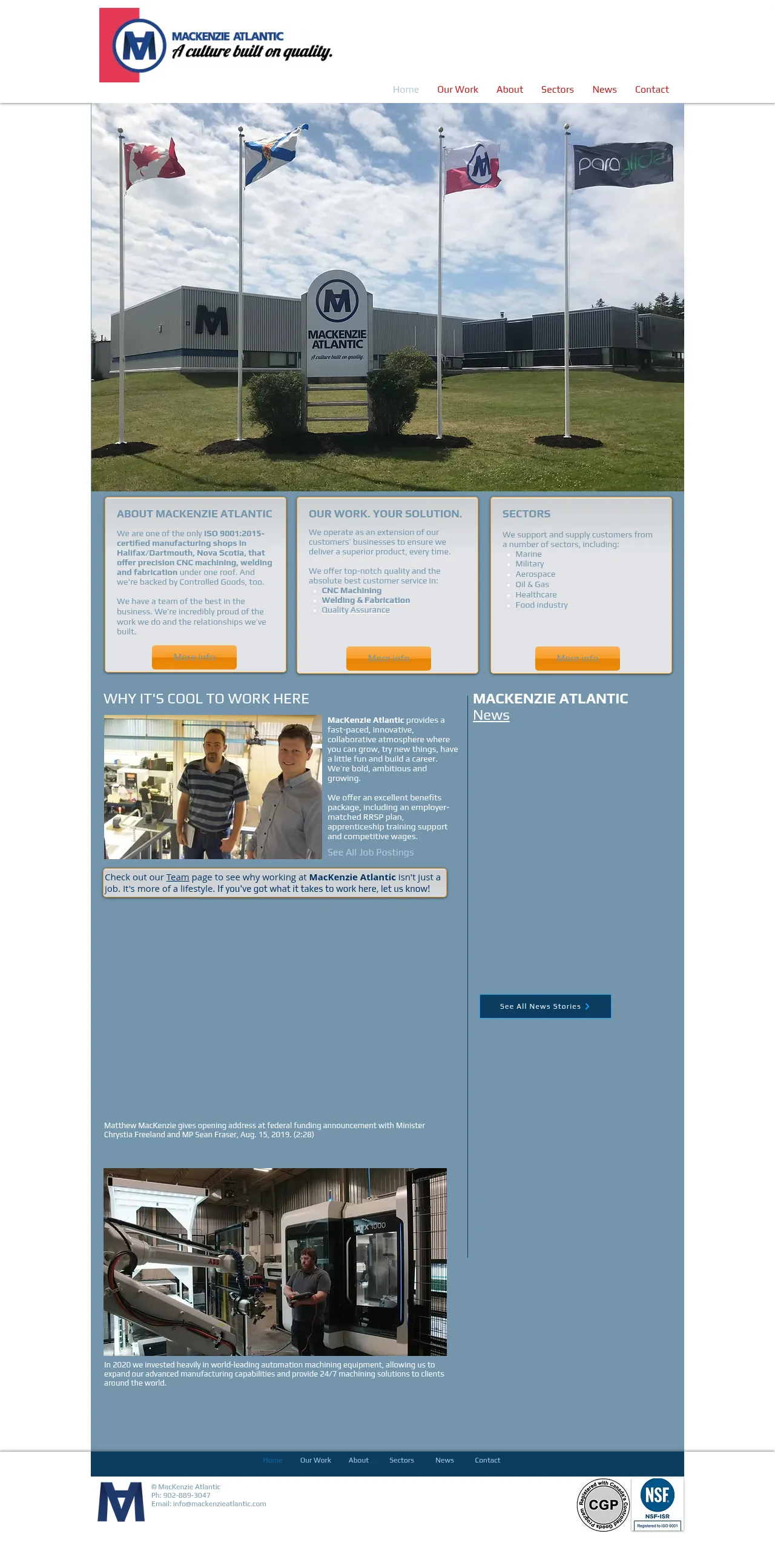 MacKenzie Atlantic is an ISO 9001:2015-certified manufacturing company based in Halifax and Dartmouth, Nova Scotia. The company specializes in precision CNC machining, welding, and metal fabrication services. They serve a diverse client base across the marine, military, aerospace, healthcare, and food processing industries. By acting as an extension of their customers' operations, they focus on delivering high-quality products and collaborative manufacturing solutions. The firm is recognized for its innovative, fast-paced work environment and commitment to technical excellence.