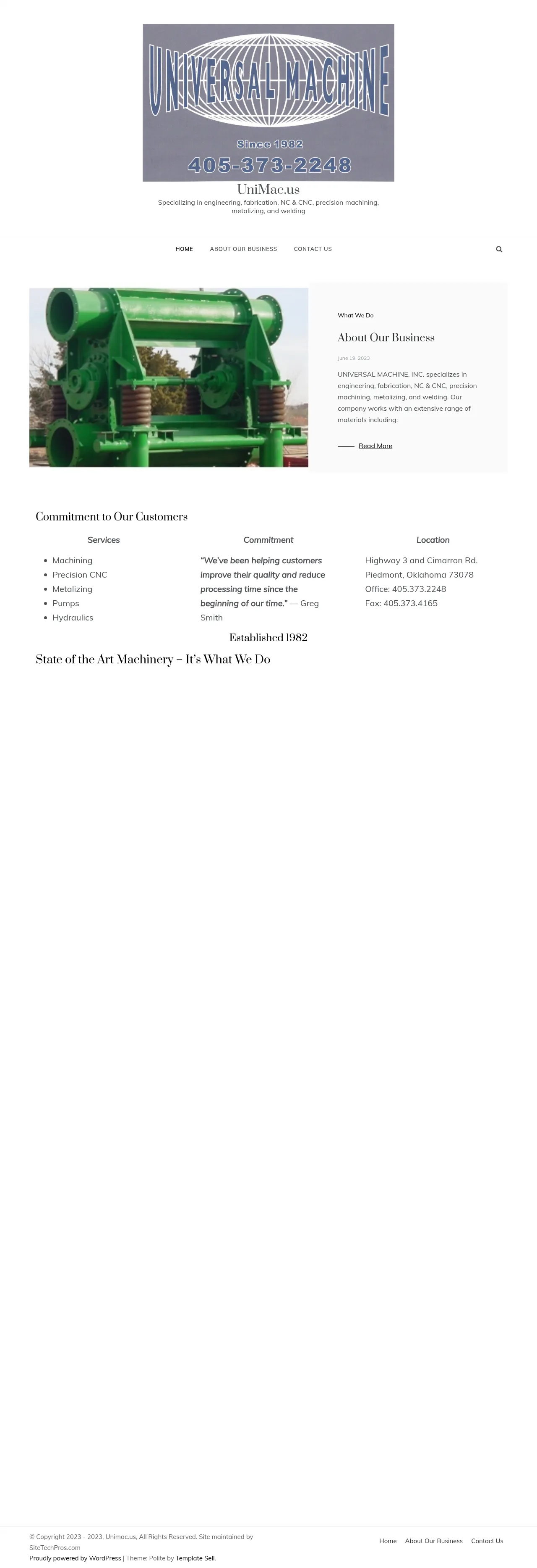 Unimac is an Oklahoma-based industrial manufacturing company that has been in operation since 1982. Located in Piedmont, the firm specializes in precision machining services utilizing state-of-the-art equipment. They focus on delivering high-quality mechanical components to meet the technical demands of diverse industrial sectors. By combining decades of industry experience with modern manufacturing technology, the company provides reliable fabrication solutions for complex requirements.