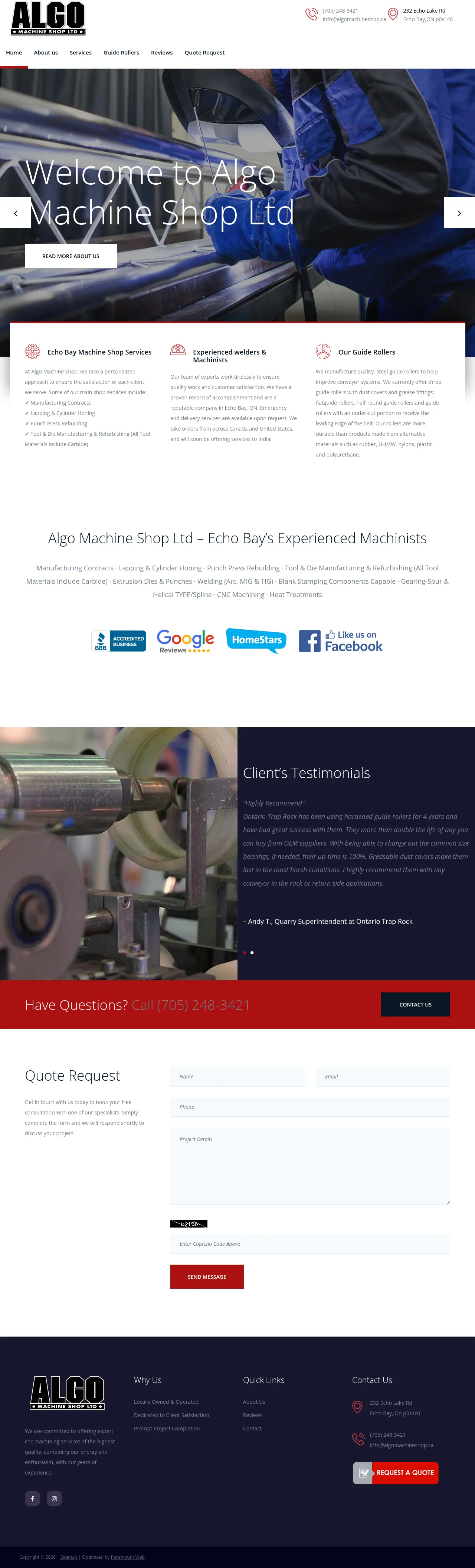 232 Echo Lake Rd, Echo Bay, ON P6A 7A8, Canada, Sault Ste. Marie, Ontario, Canada(705) 248-3421info@algomachineshop.cahttps://www.algomachineshop.ca/