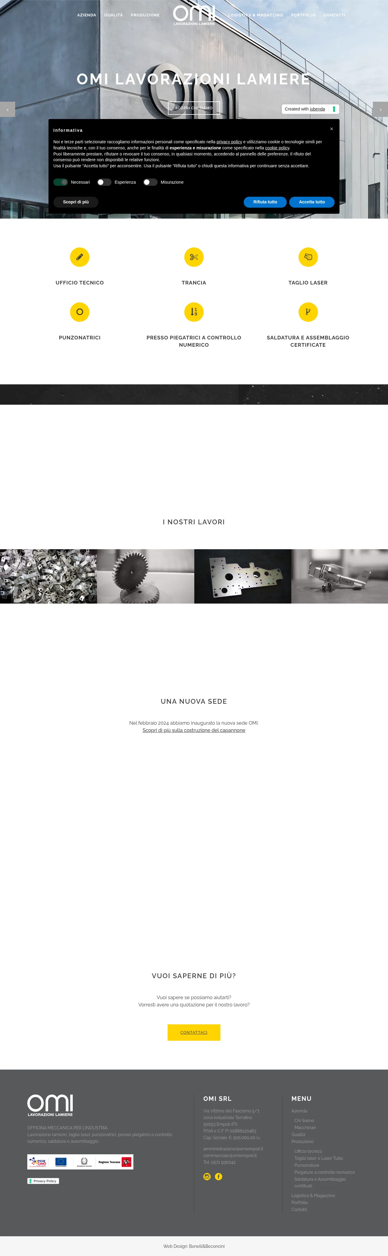 OMI Srl is an industrial mechanical workshop based in Empoli, Italy, established in 1979. The company specializes in sheet metal processing, including laser cutting, CNC punching, press bending, and certified welding and assembly. Their technical department provides engineering support and 3D prototyping to optimize production processes for diverse industrial applications. They utilize advanced machinery and automated systems to maintain high standards for carbon steel, stainless steel, aluminum, brass, and copper components. OMI Srl serves a broad range of sectors, providing custom solutions from prototype development through to final delivery.
