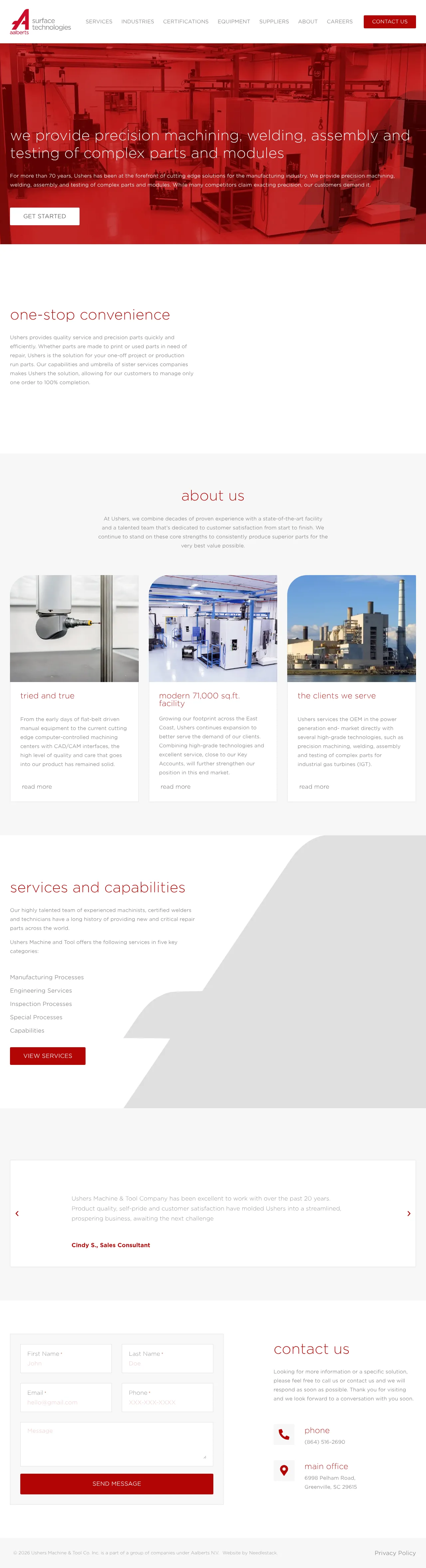 Ushers Machine and Tool, Inc. is a precision manufacturing facility offering comprehensive machining, welding, assembly, and testing services. With over 70 years of experience, the company supports a diverse range of industries including power generation, aerospace, automotive, and medical. Their capabilities include multi-axis CNC machining, critical repair, design engineering, and non-destructive testing. The company maintains a 71,000 square-foot facility and utilizes advanced technologies to handle complex components and industrial gas turbine parts. They prioritize quality and precision, serving both OEM production and critical maintenance markets worldwide.