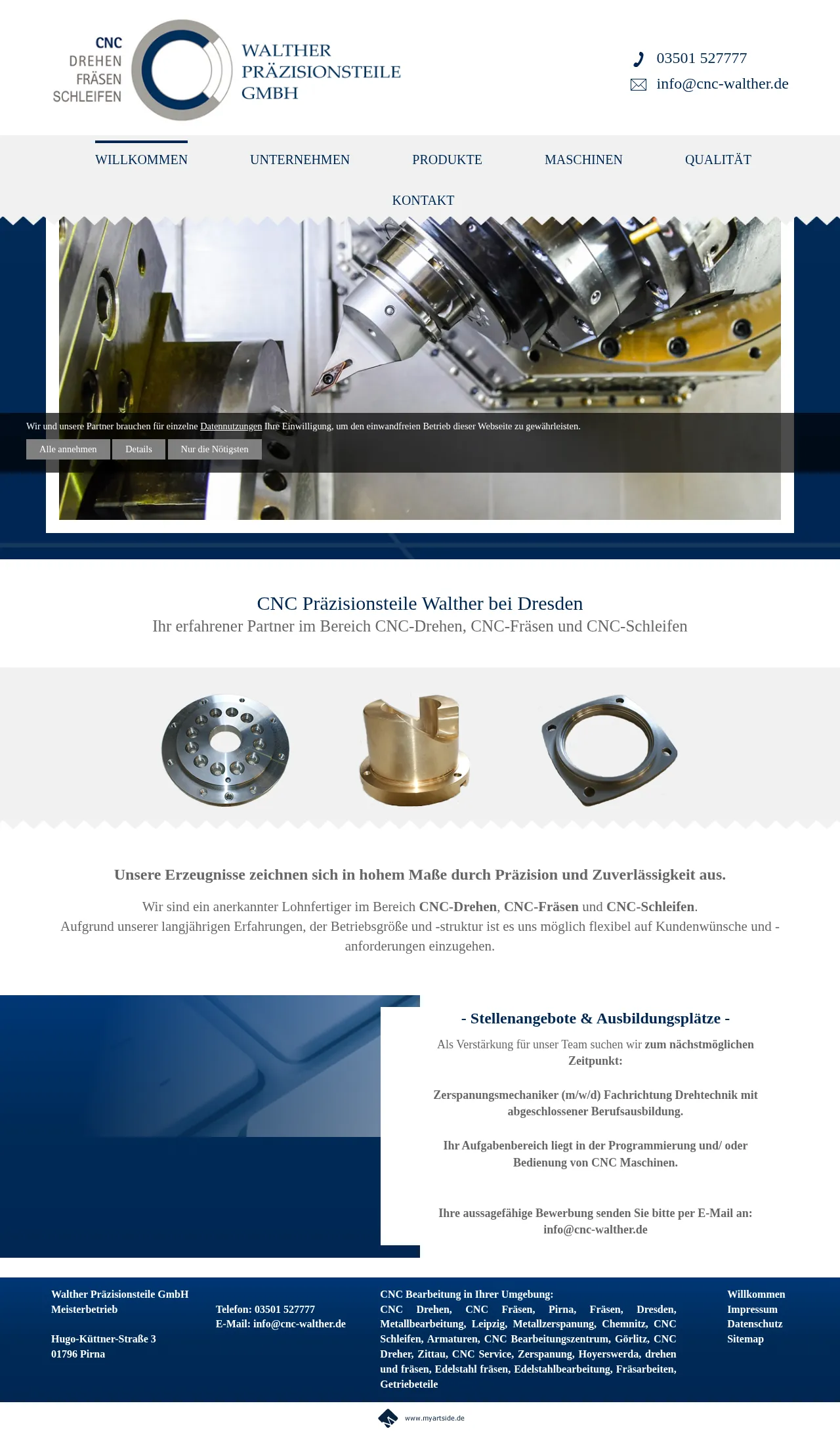 Walther Präzisionsteile GmbH is a precision machining company based in Pirna, Germany, serving the region around Dresden and Saxony. The company specializes in contract manufacturing, providing high-precision CNC turning, milling, and grinding services for various industrial applications. They offer flexible production capabilities, handling both prototype development and large-series production based on customer-provided drawings or samples. The firm processes a diverse range of materials to meet exact technical specifications and quality standards. With a focus on reliability and precision, they function as an experienced partner for companies requiring tailored mechanical components.
