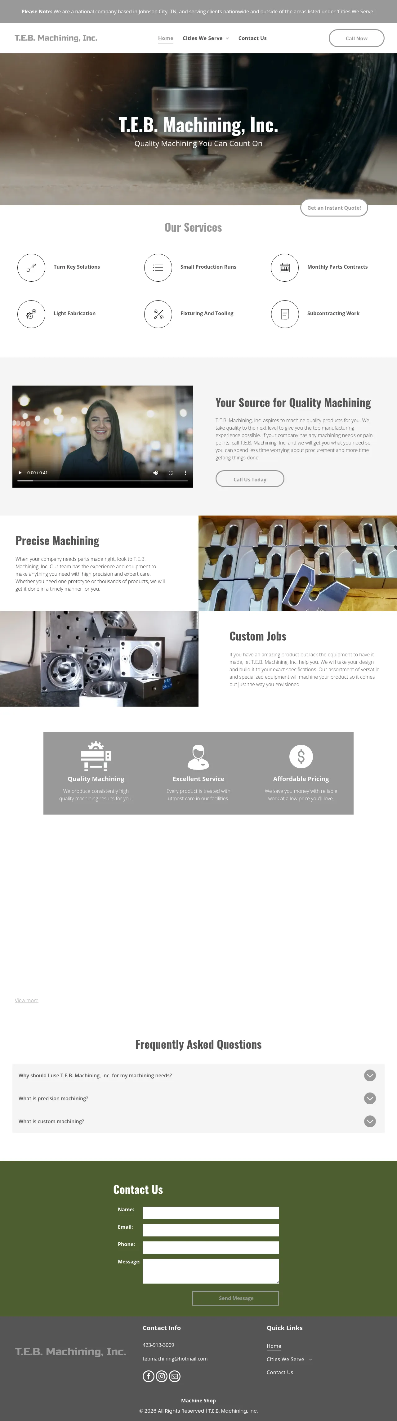 624 Old State Rte 34, Jonesborough, TN 37659, USA, Johnson City, Tennessee, United States(423) 913-3009tebmachining@hotmail.comhttps://www.tebmachining.com/