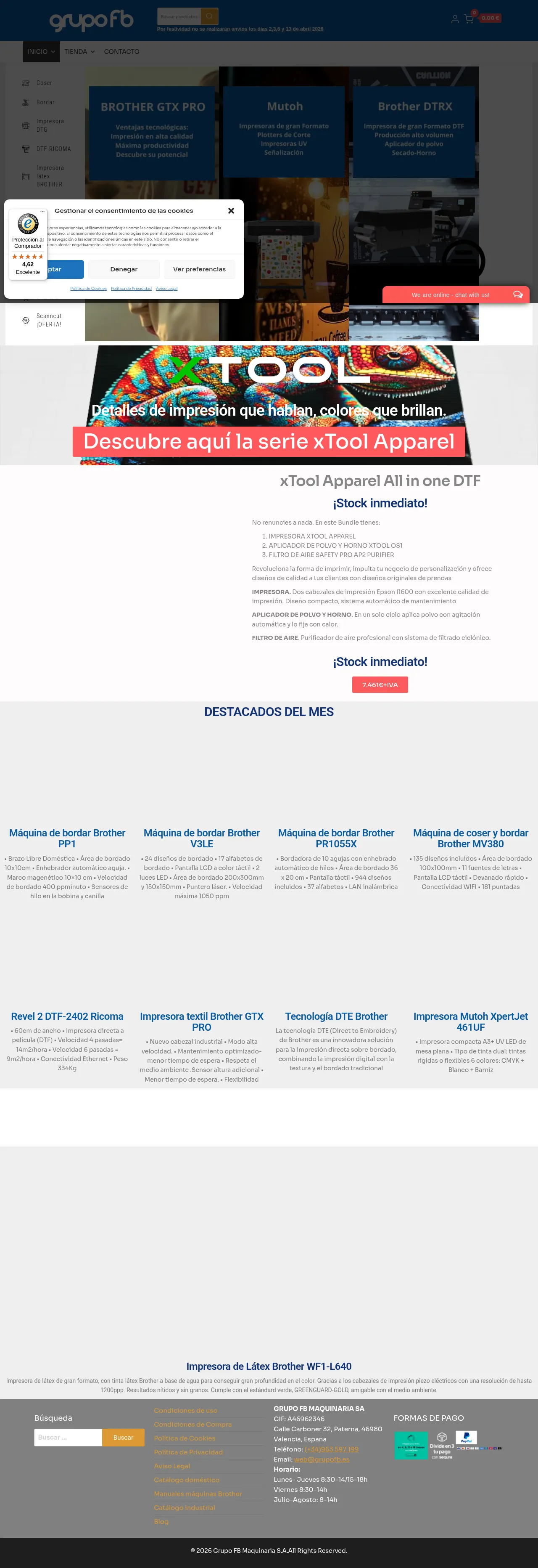Grupo FB Maquinaria S.A. specializes in the distribution and technical support of industrial and domestic textile personalization equipment. The company provides a comprehensive range of machinery including embroidery systems, direct-to-garment and direct-to-film printers, and industrial sewing solutions. Serving industries such as apparel production and custom printing, they offer high-performance hardware alongside consumables and software. Their operational model integrates specialized technical training and professional service to ensure equipment reliability. The business maintains a strong focus on advanced production technology, including wide-format latex printing and UV-3D solutions.