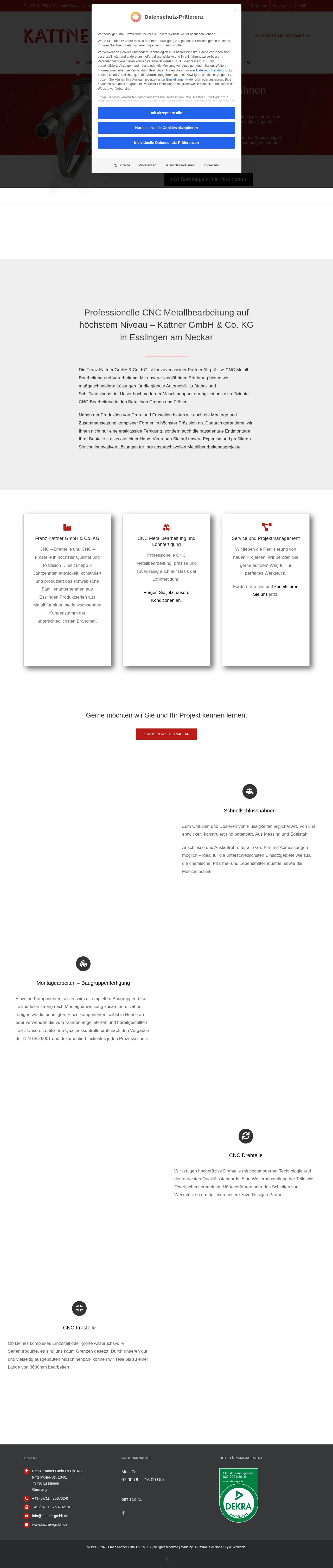 Franz Kattner GmbH is a precision manufacturing company specializing in CNC turning and milling. The firm produces complex individual components and series products for diverse sectors, including aerospace and elevator systems. In addition to machining, they offer comprehensive assembly services, managing the procurement of small parts and accessories to deliver finished components. Utilizing an extensive machine park, the company works with various metals and plastics to ensure high-quality standards and precise dimensional accuracy. They provide professional consultation for custom project requirements and offer individual surface finishing and heat treatment solutions through a reliable partner network.