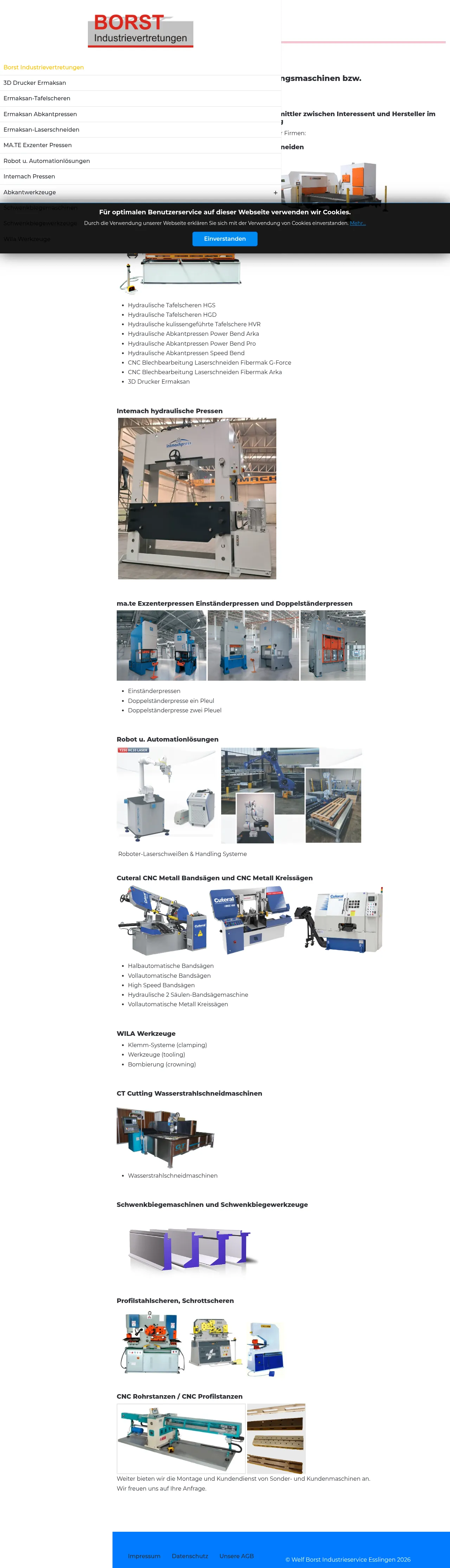 Borst Industrievertretungen specializes in the distribution and service of high-performance metalworking and sheet metal processing machinery. Acting as a professional intermediary between manufacturers and industrial end-users, the company provides comprehensive support for a wide range of production technology. Their core expertise encompasses the sale and maintenance of CNC laser cutters, press brakes, shears, and specialized industrial tools. Beyond equipment supply, the company offers technical services, including machinery commissioning, PLC control maintenance, and automation solutions. They cater to a diverse manufacturing sector by providing optimized tooling and clamping systems tailored to specific project requirements.