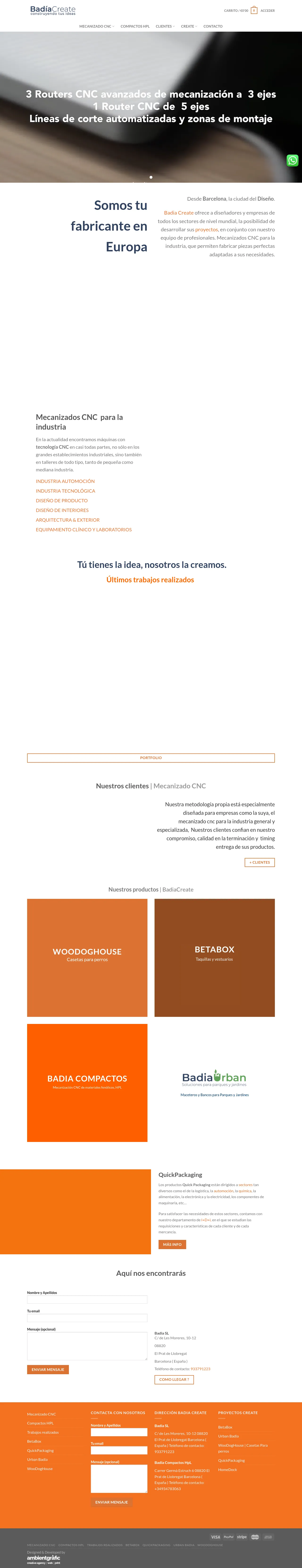 Badia Create is a Barcelona-based manufacturing firm specializing in precision CNC machining and the fabrication of HPL (High-Pressure Laminate) solutions. The company provides design and production services for a wide range of industries, including automotive, logistics, electronics, and interior design. They offer bespoke manufacturing capabilities ranging from architectural facade cladding and retail fixtures to custom mechanical components. Utilizing advanced R&D and engineering processes, Badia Create manages projects from initial technical requirement analysis to final product assembly. Their facility is equipped to handle diverse industrial applications for both small-scale workshops and large-scale manufacturing needs.