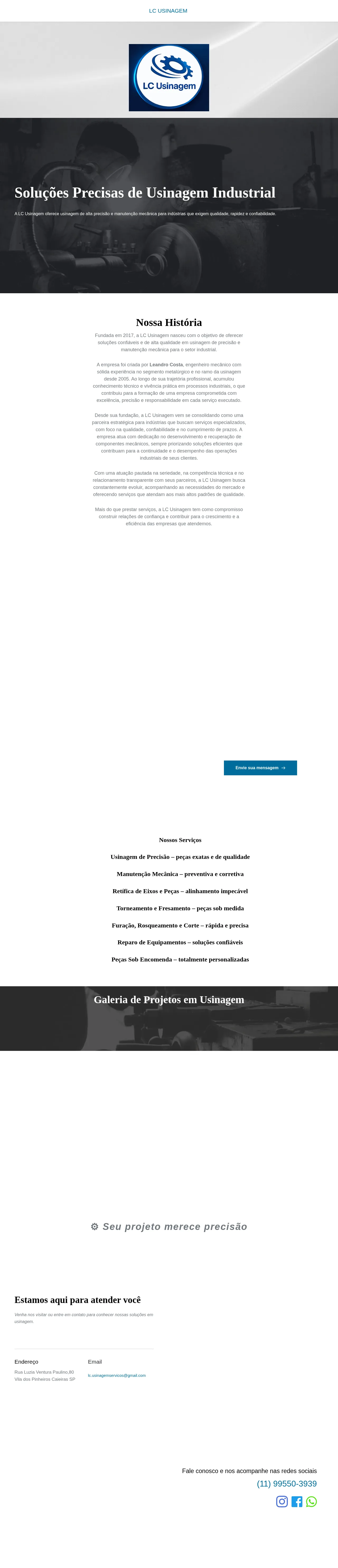 R. Luzia Ventura Paulino, 80 - Vila dos Pinheiros, Caieiras - SP, 07718-080, Brazil, Franco da Rocha, São Paulo, Federative Republic of Brazil(11) 99550-3939lc.usinagemservicos@gmail.comhttps://lcusinagem.com.br/